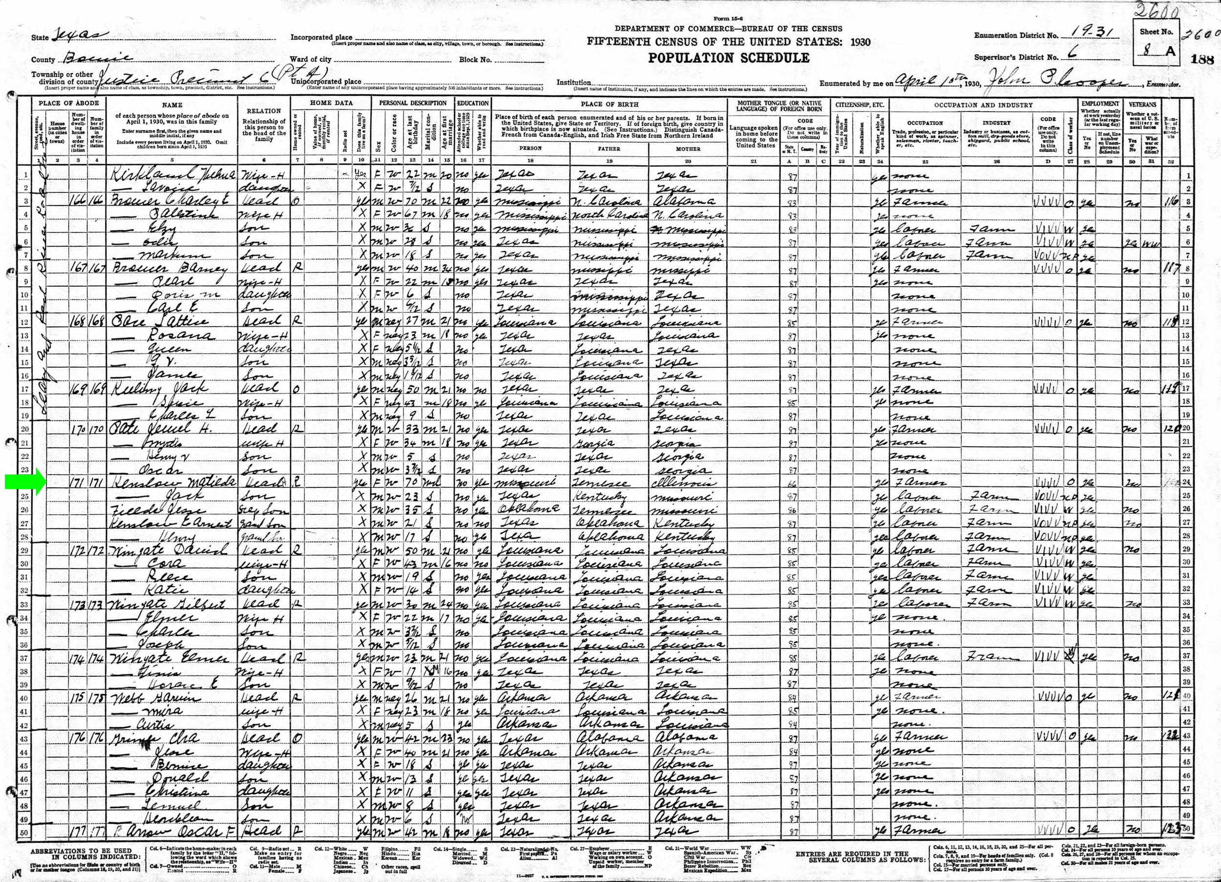 April 1930 in Bowie Co., Texas