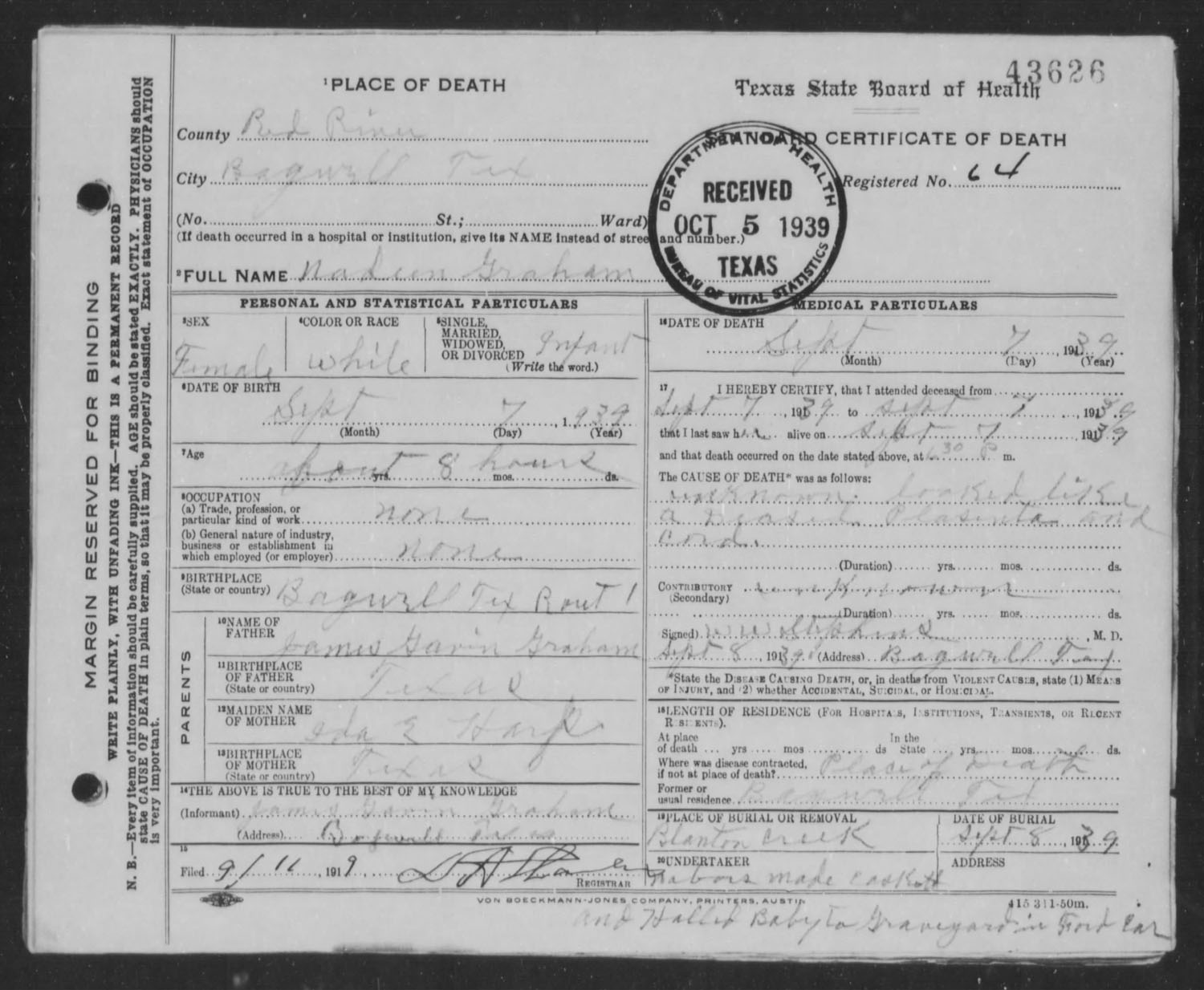 Sepember 1939 in Bagwell, Texas