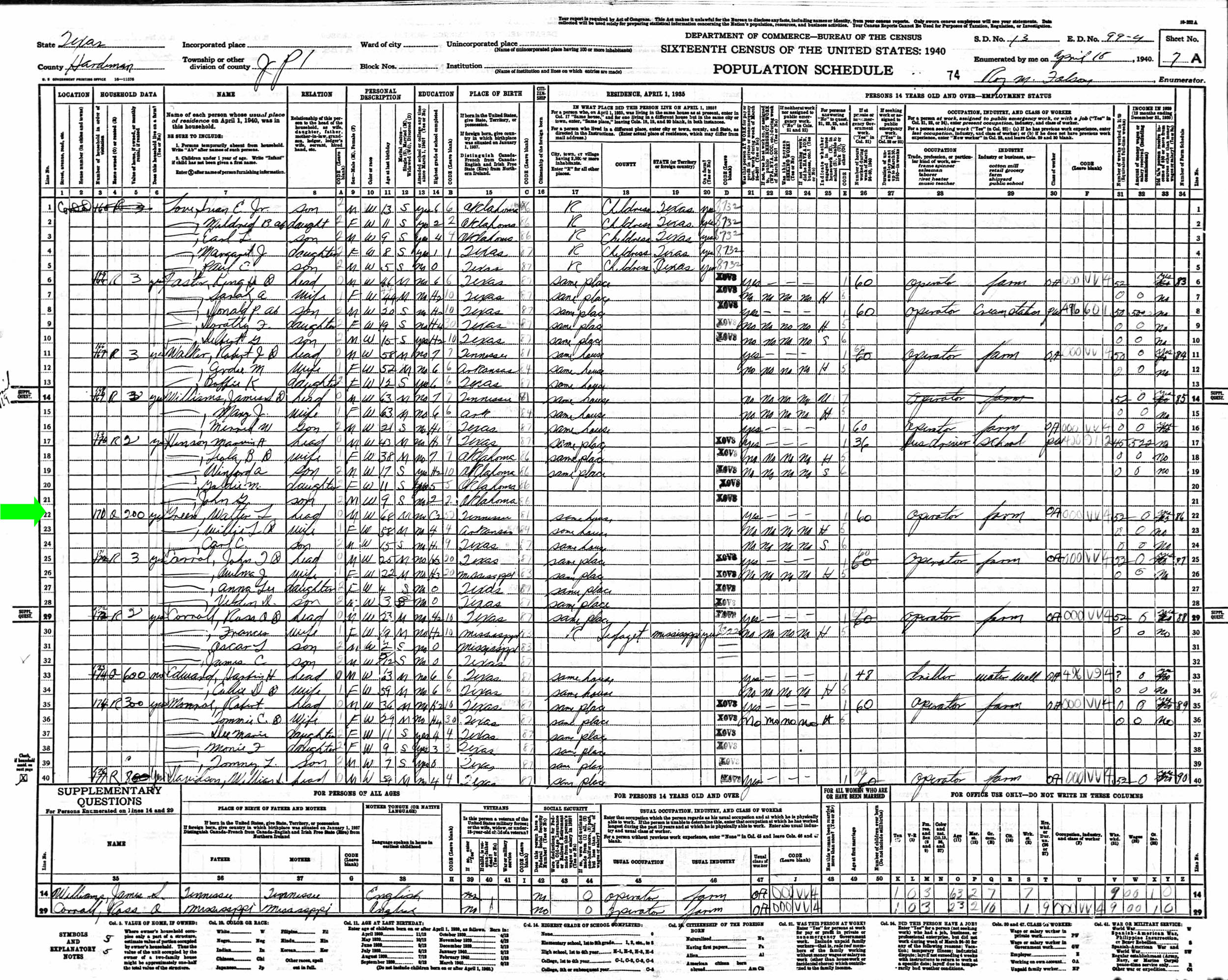 April 1940 in Hardeman Co., Texas; Same house as April 1935
