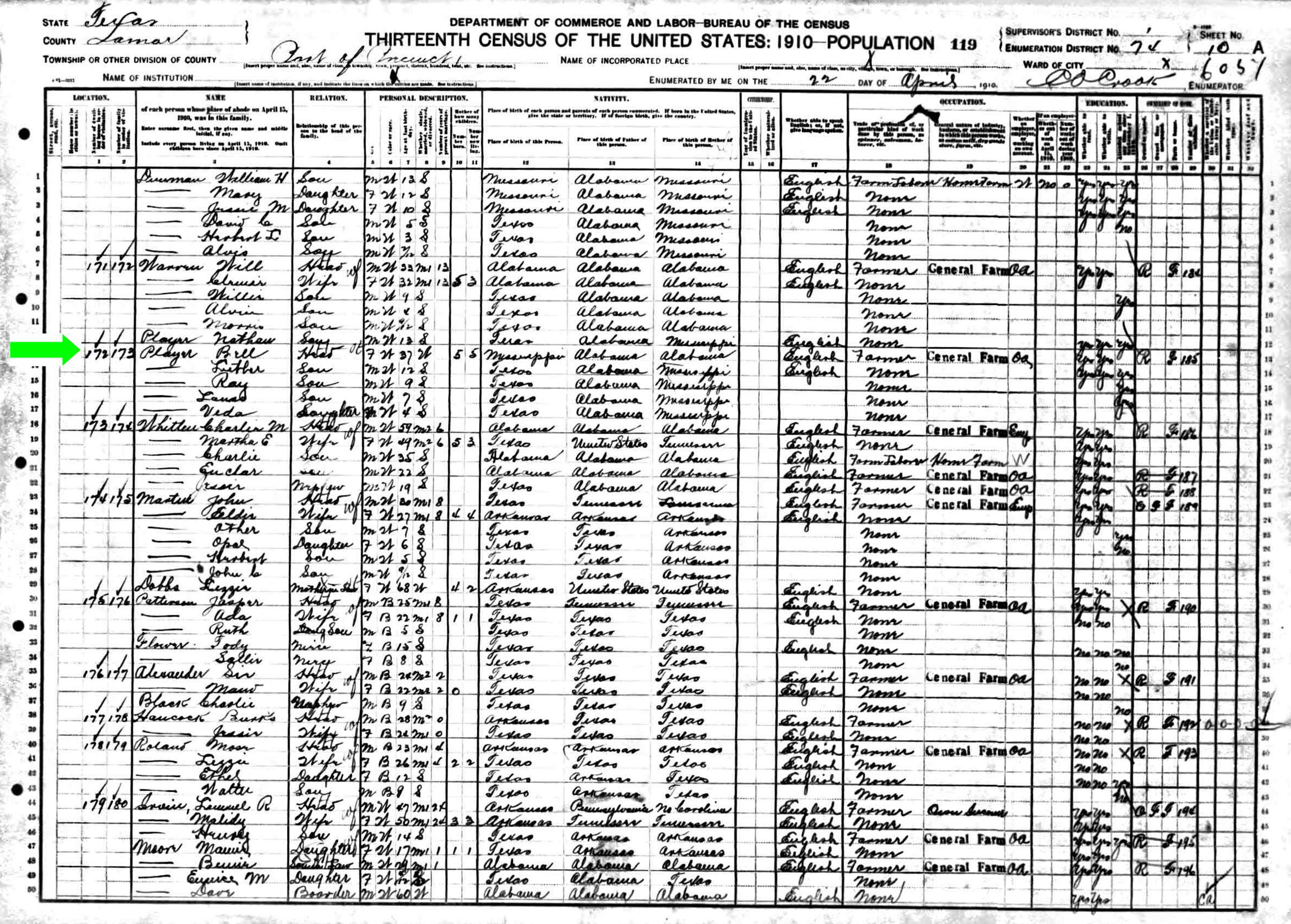 April 1910 in Lamar Co., Texas
