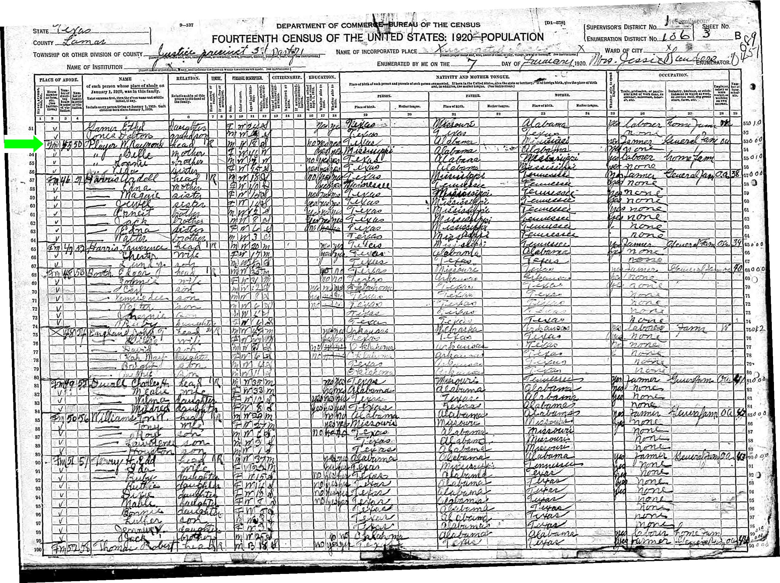 February 1920 in Lamar Co., Texas