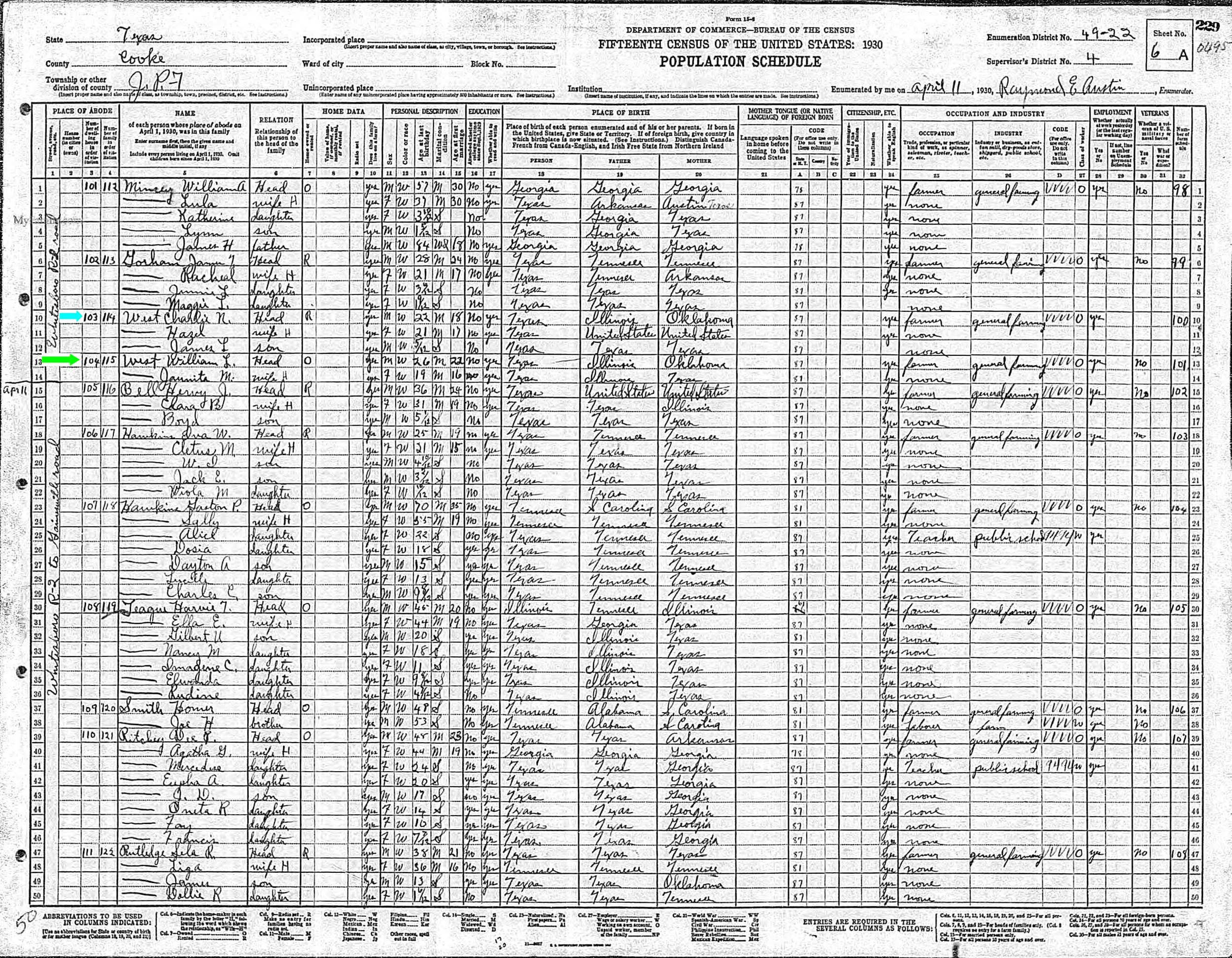April 1935 in Cooke Co., Texas; Same house as April 1940