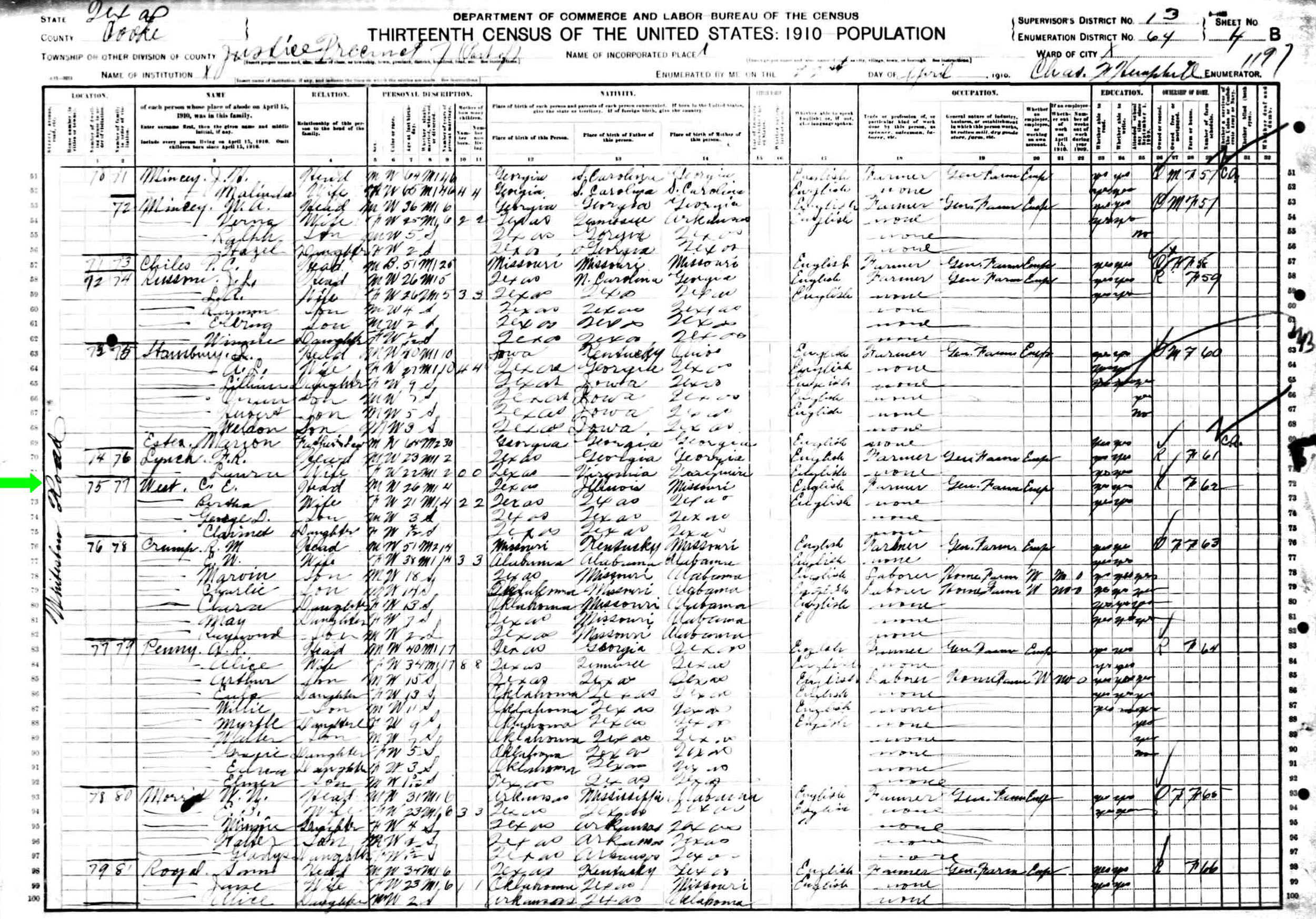 April 1910 in Cooke Co., Texas; Whitesboro Road