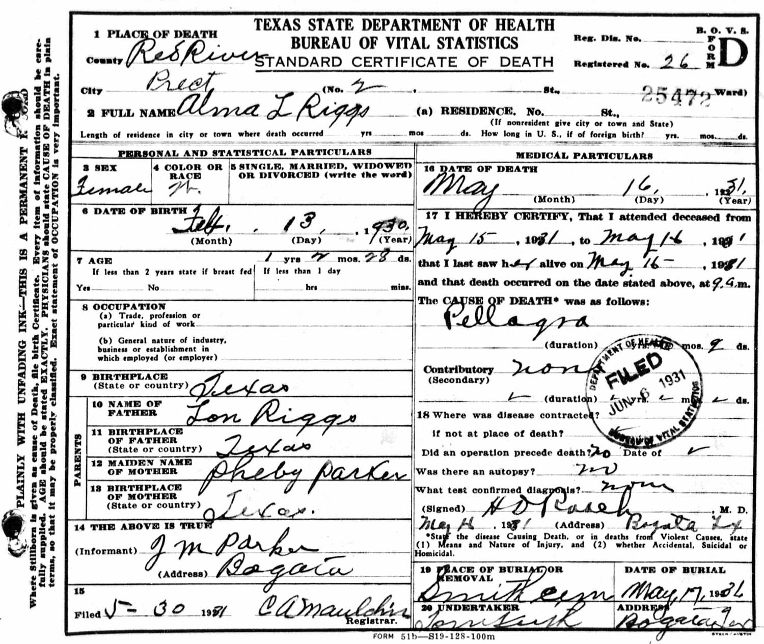 1907 in Red River Co., Texas