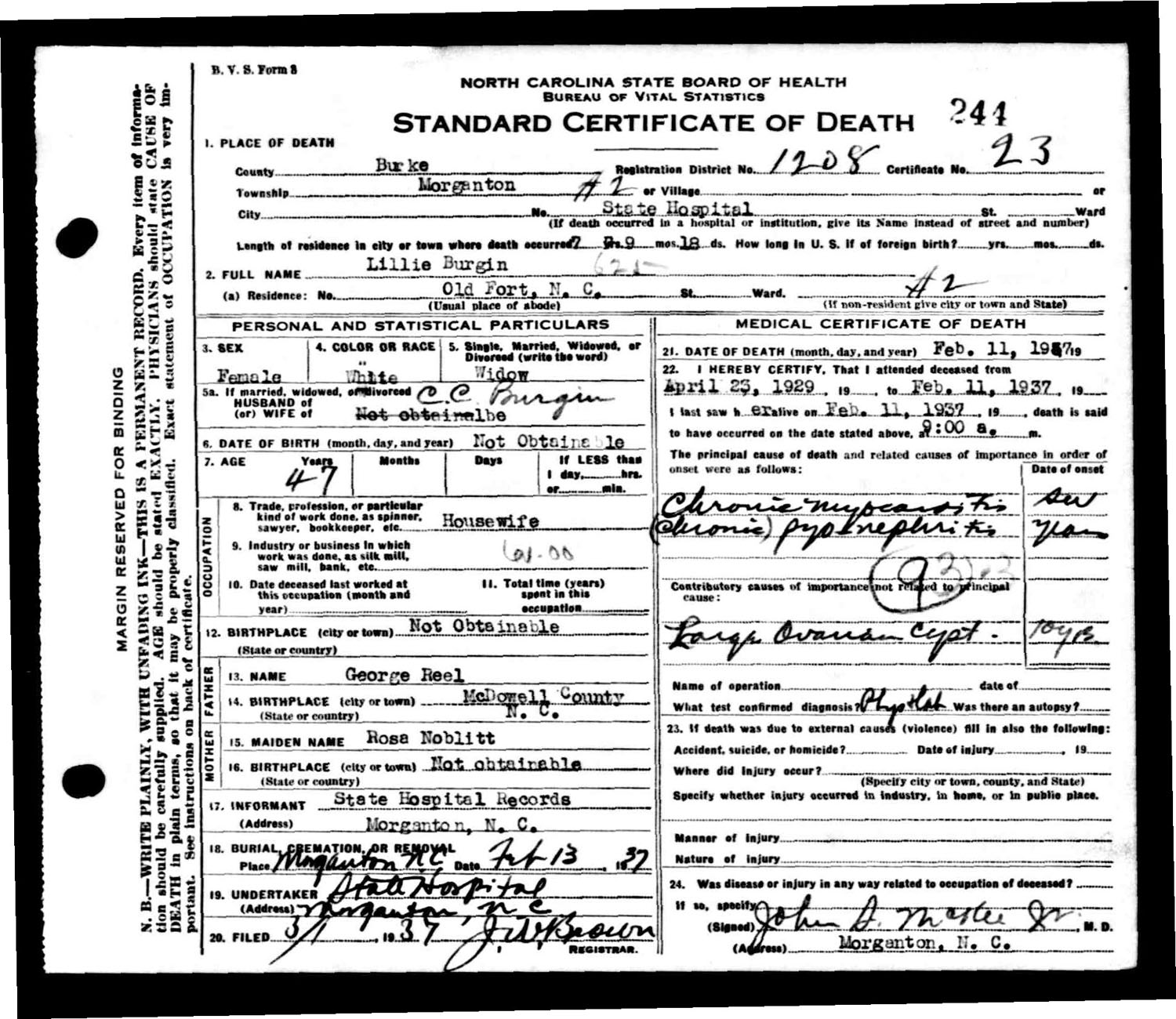 February 01, 1858 in McDowell Co., North Carolina
