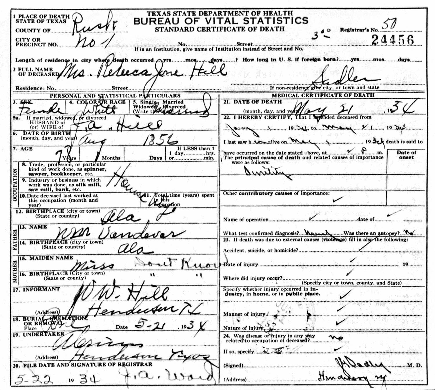 April 10, 1937 in Pone, Texas; Neeley Cemetery