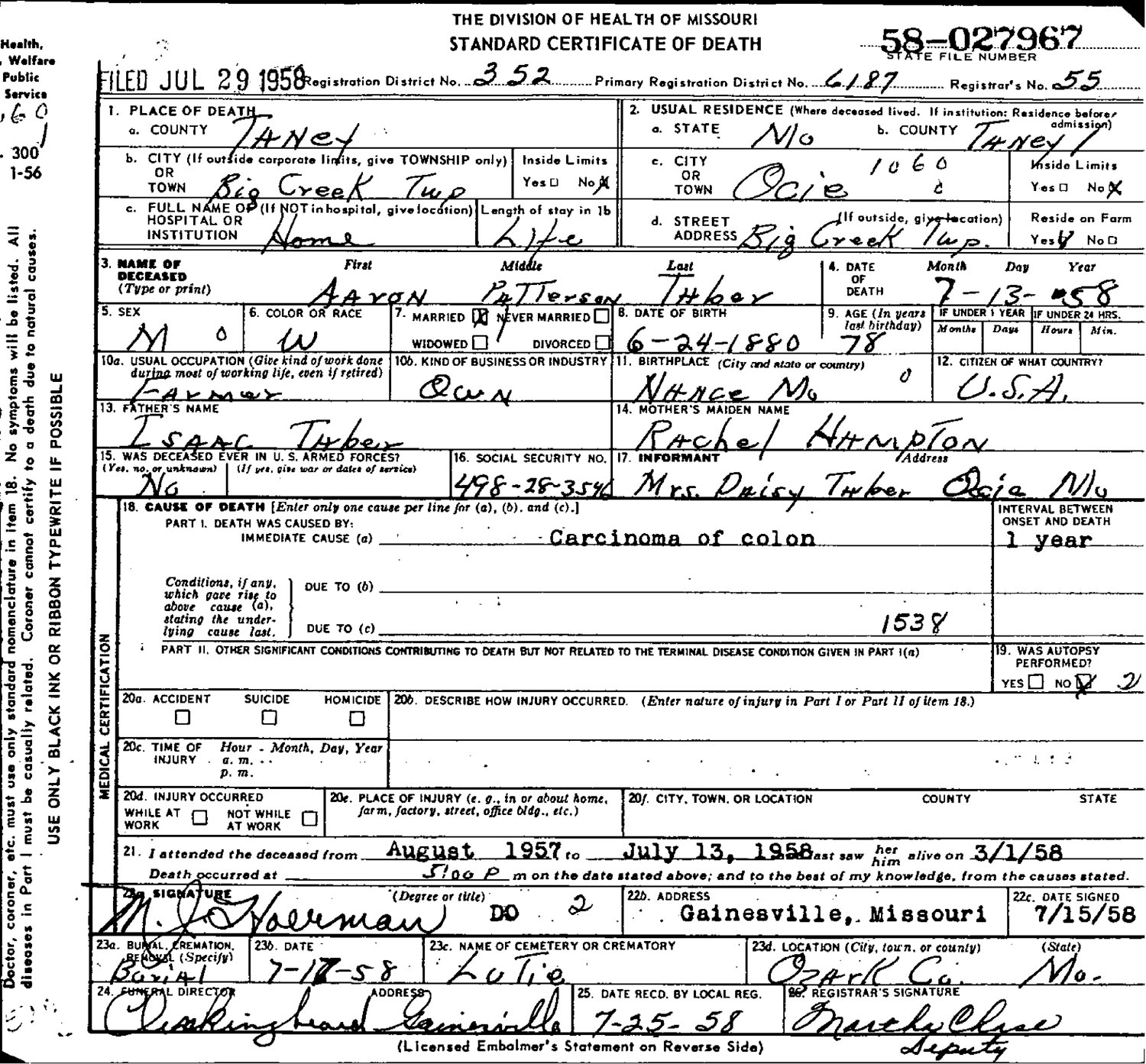 1917 - Taney Co., Missouri