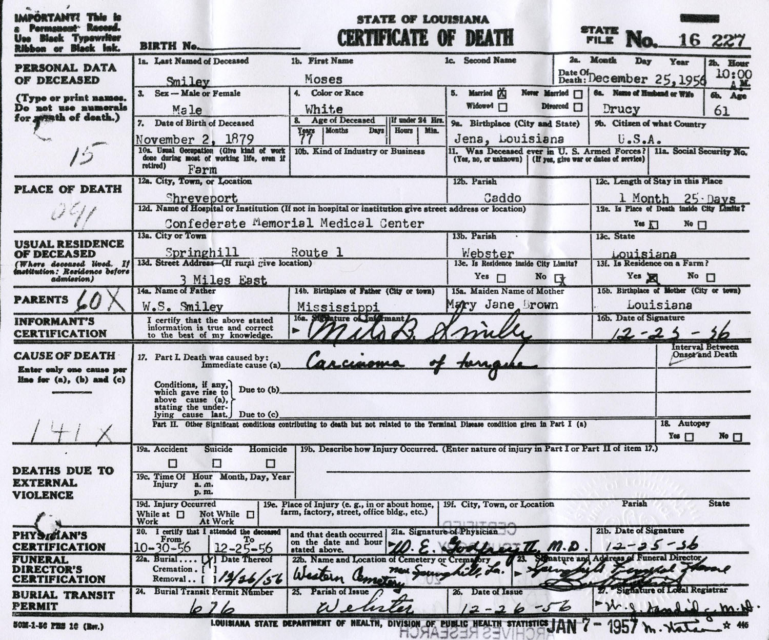 December 1956 in Springhill, Louisiana; 3 miles east of town