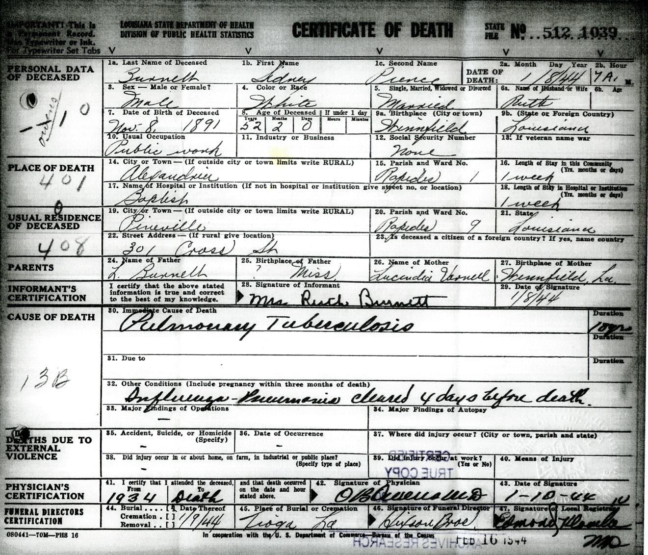 1926 in Woodworth, Louisiana; Woodworth Cemetery