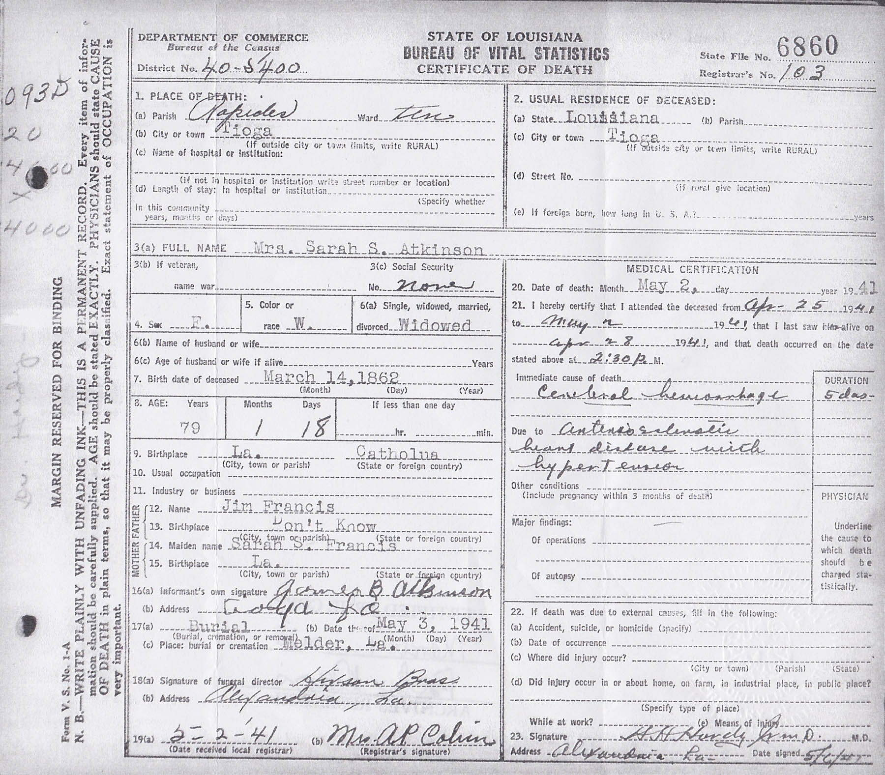 Married: January 13, 1851 in Catahoula Co., Louisiana