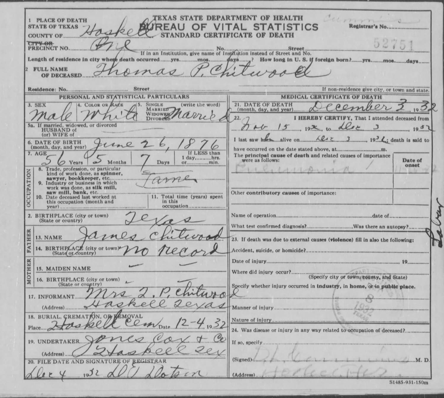 1947 in Haskell, Texas; Willow (Haskell) Cemetery