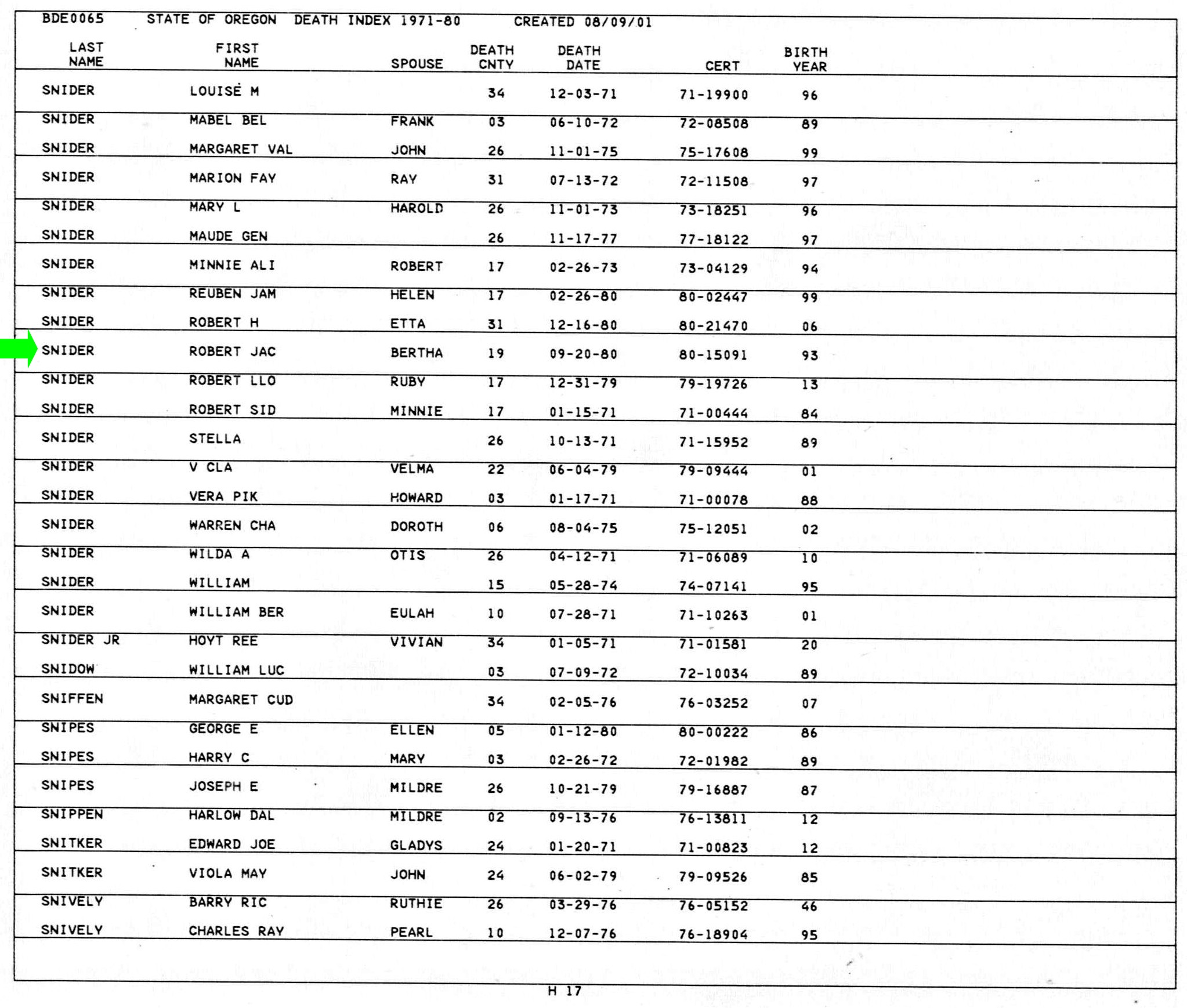 1980 in New Pine Creek, Oregon; New Pine Creek Cemetery