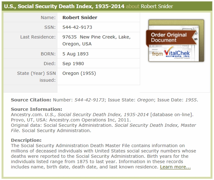 April 1942 in New Pine Creek, California; Mailing address is New Pine Creek, Lake, Oregon, USA