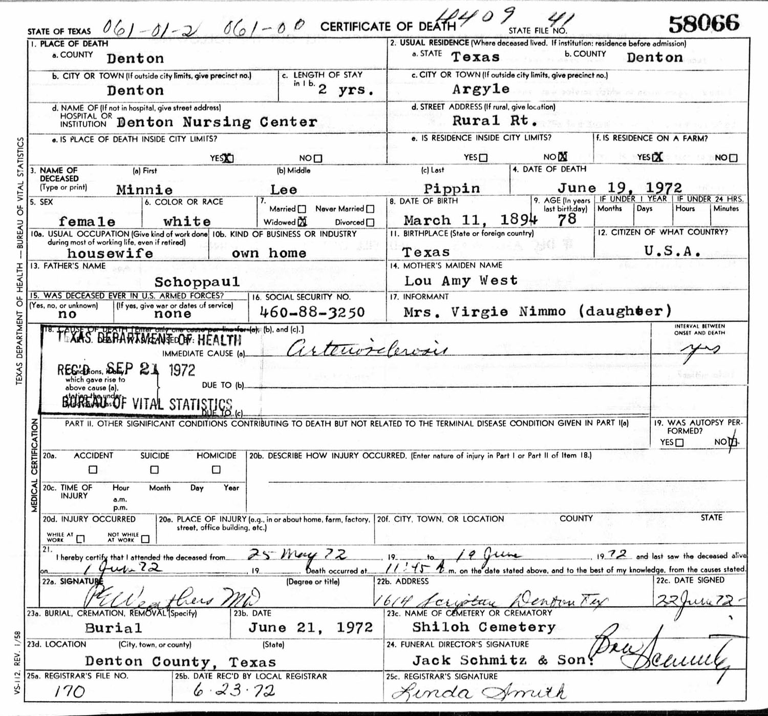 June 19, 1972 in Denton, Texas; Denton Nursing Center
