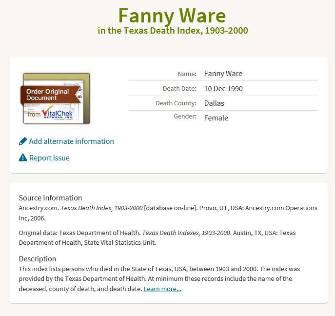 December 1990 in Gainesville, Texas; Woodbine Cemetery