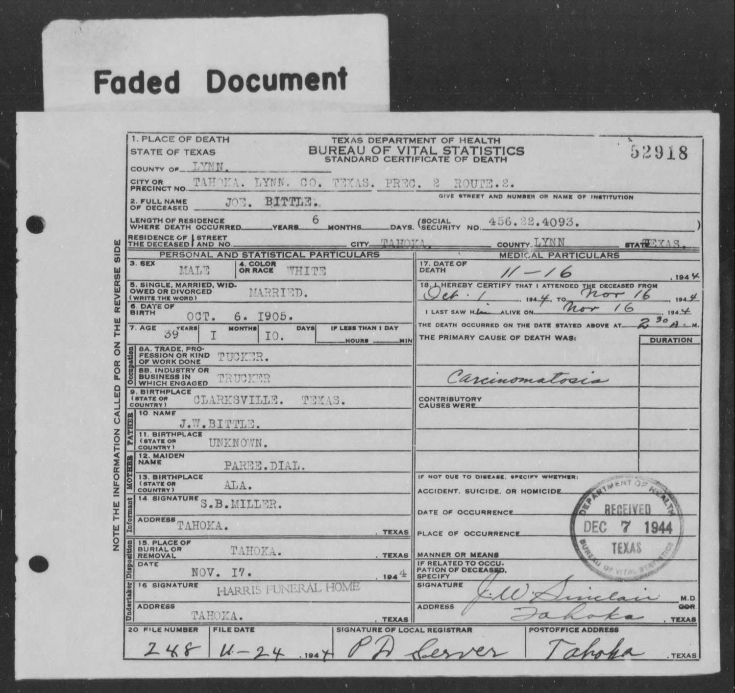 May 10, 1931 in Childress, Texas; Childress Cemetery