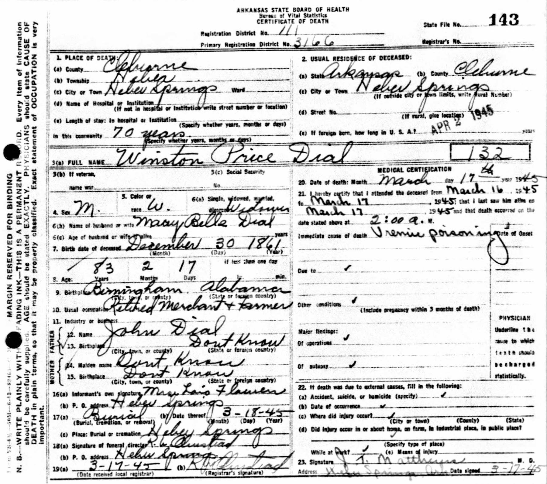 1879 in Quitman, Arkansas; Mount Pleasant Cemetery