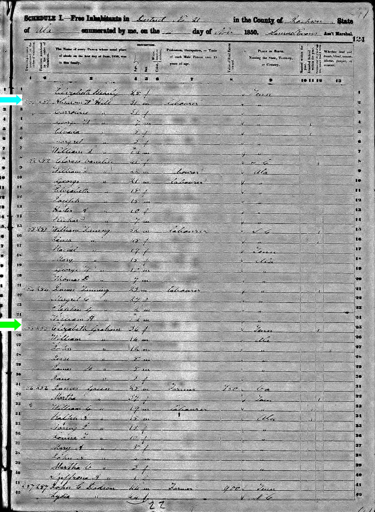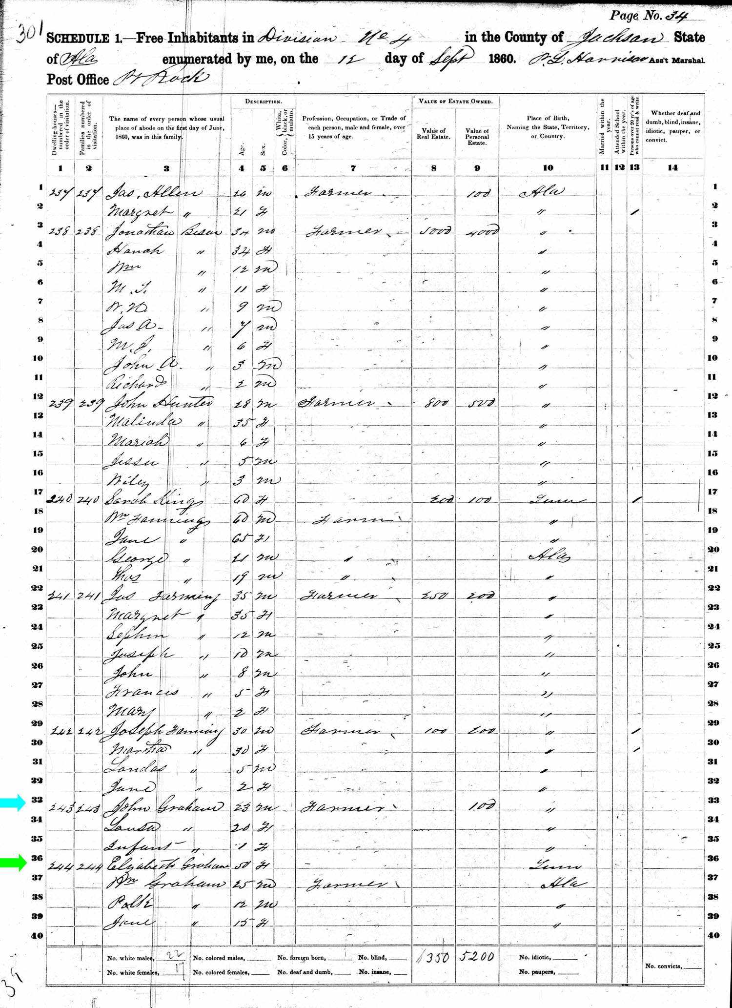Sepember 1860 in Jackson Co., Alabama