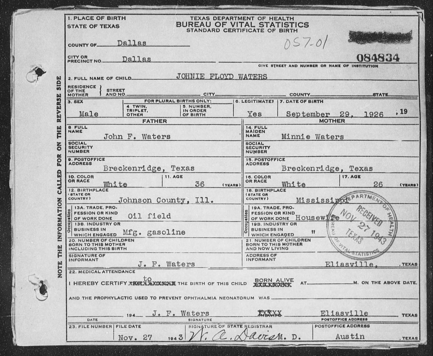 February 1927 in Breckenridge, Texas; Ivan Star Rt