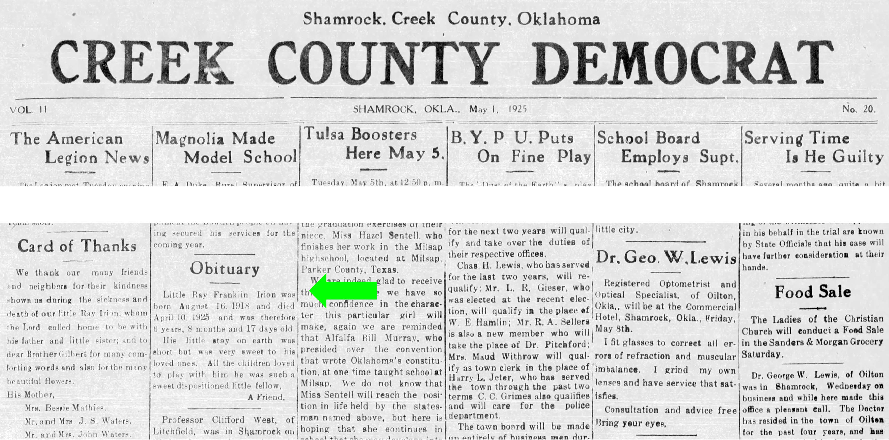March 1920 in Shannon, Oklahoma