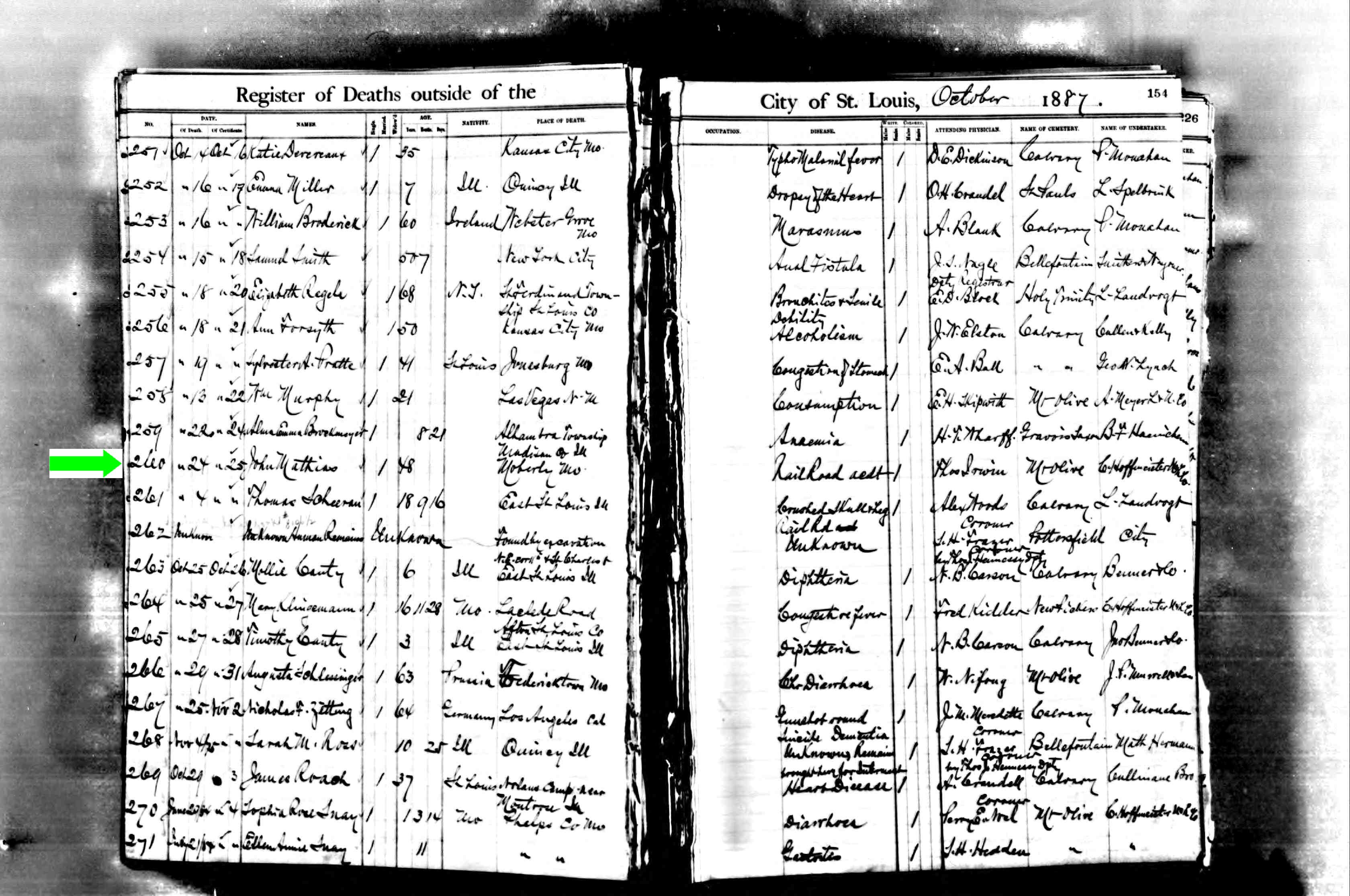 October 25, 1887 in Lemay, Missouri; Mt. Olive Cemetery
