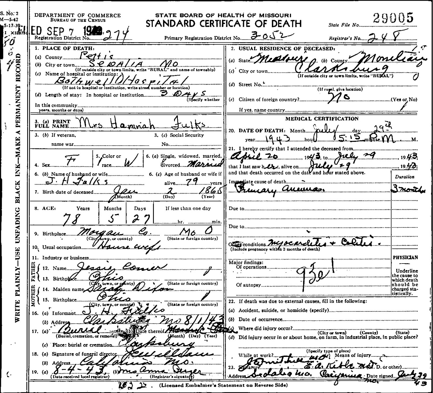 March 1901 in Barnett, Missouri; Hopewell Union Church Cemetery