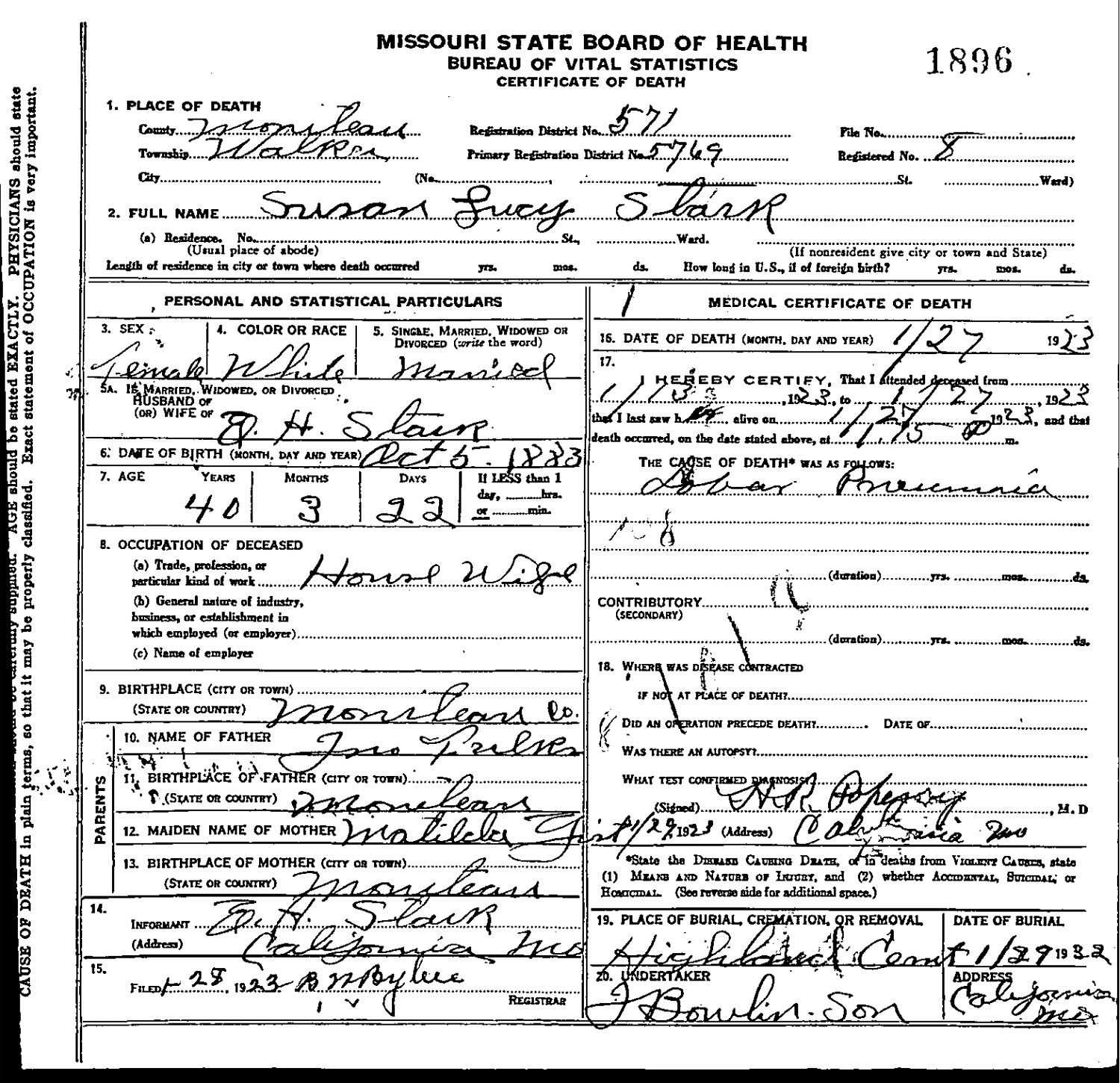 February 1921 in Moniteau Co., Missouri; Highland Cemetery