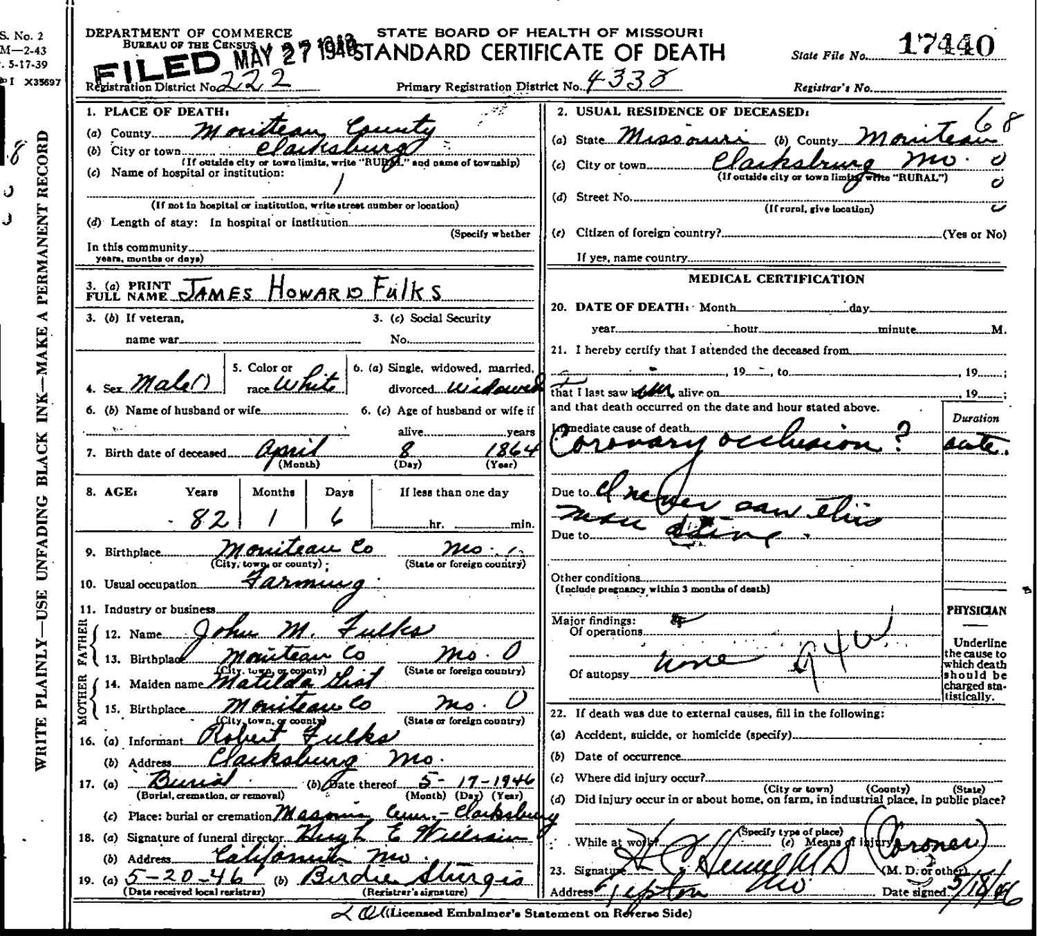 Between July and AUG 1863 in Pilot Grove, Missouri