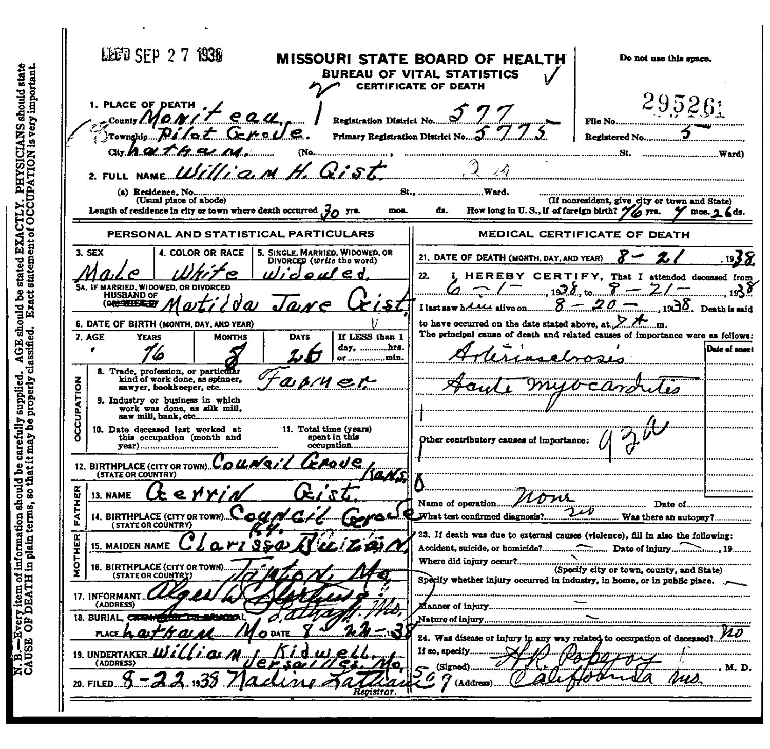 July 21, 1851 in Moniteau Co., Missouri