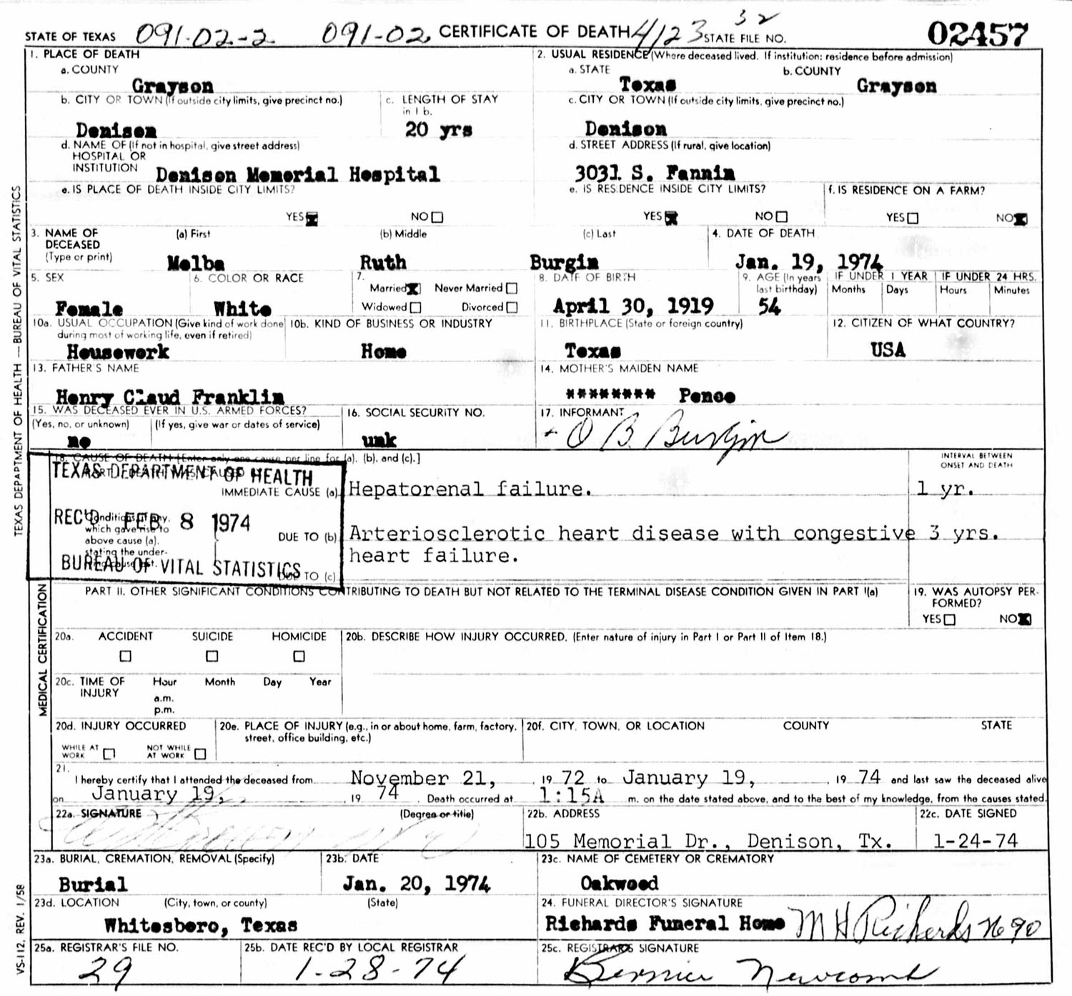 January 1974 in Denison, Texas; 3031 S. Fannin
