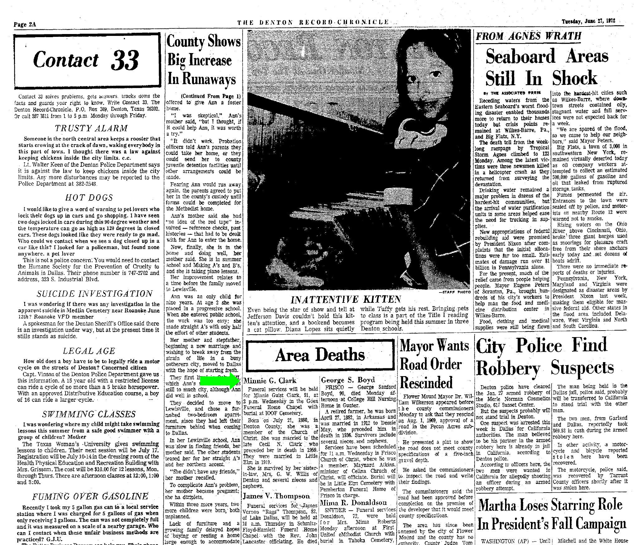 June 28, 1972 in Denton, Texas; Goen Funeral Home Chapel