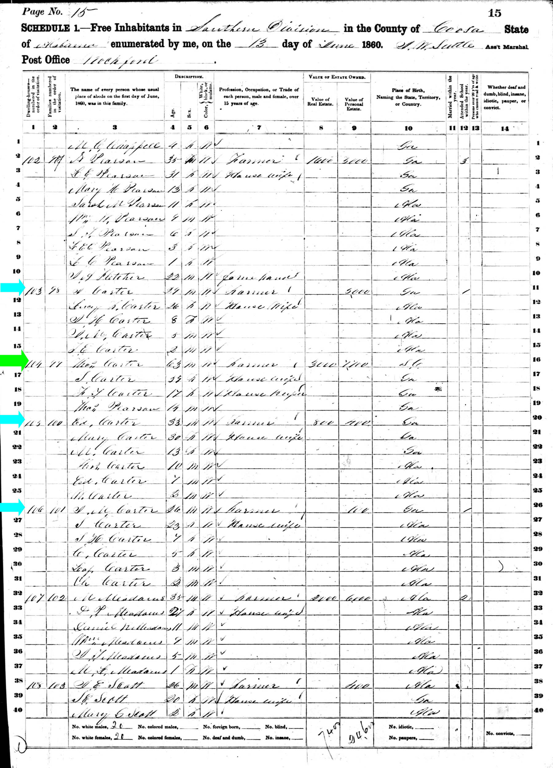 June 1860 in Coosa Co., Alabama