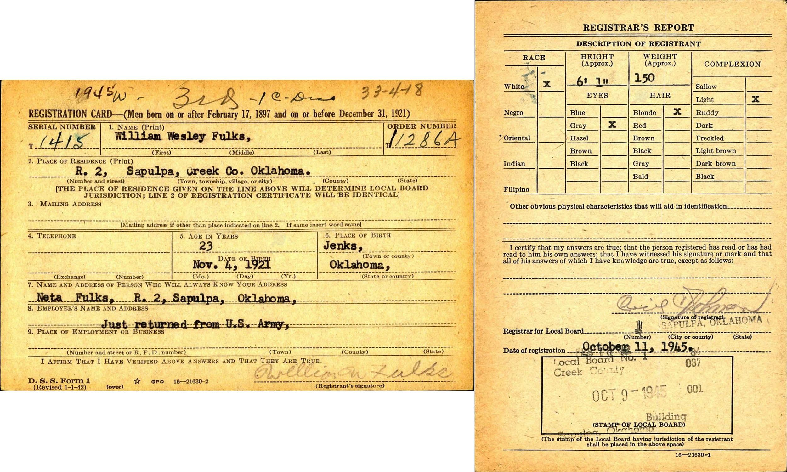 October 1945 in Sapulpa, Oklahoma; Rt. #2