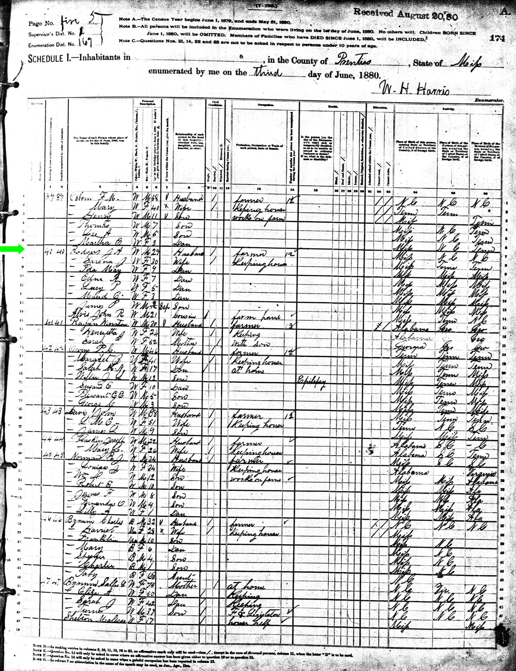 June 1880 in Prentiss Co., Mississippi
