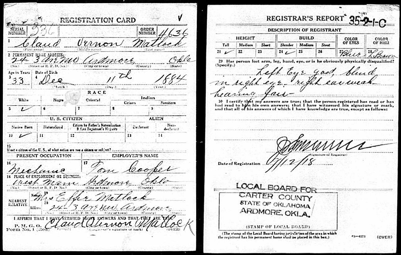 Sepember 1918 in Ardmore, Oklahoma; Mechanic