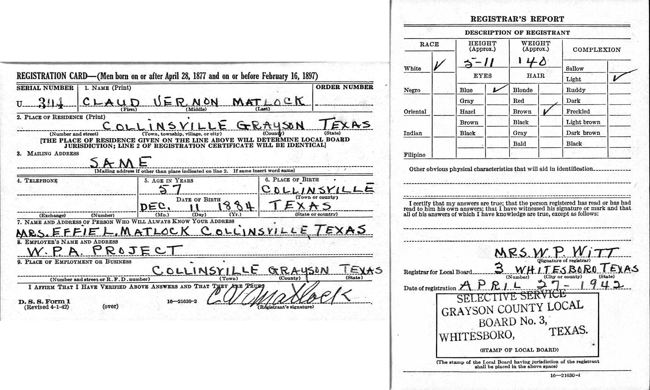 April 1942 in Collinsville, Texas