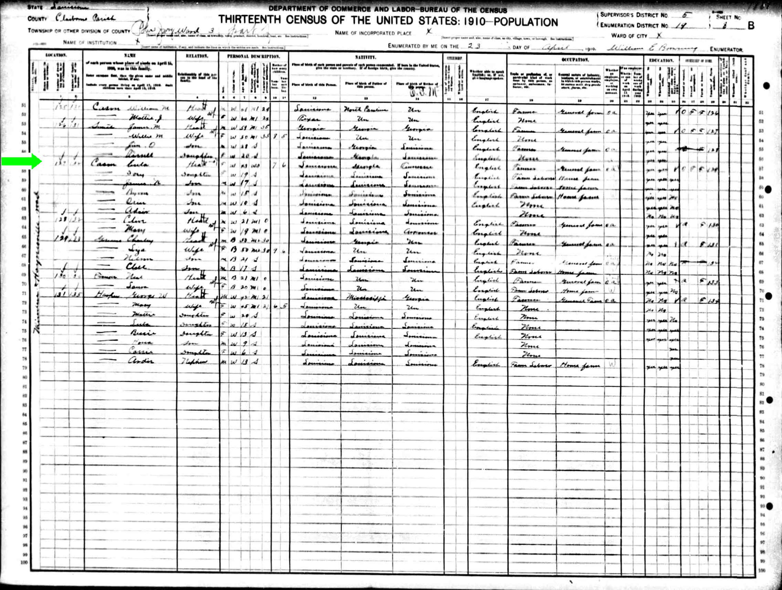 April 1910 in Claiborne Co., Louisiana