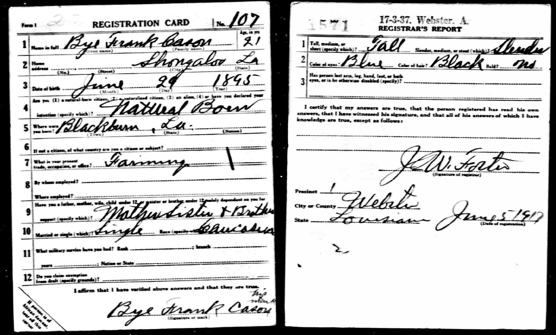 June 29, 1895 in Blackburn, Louisiana