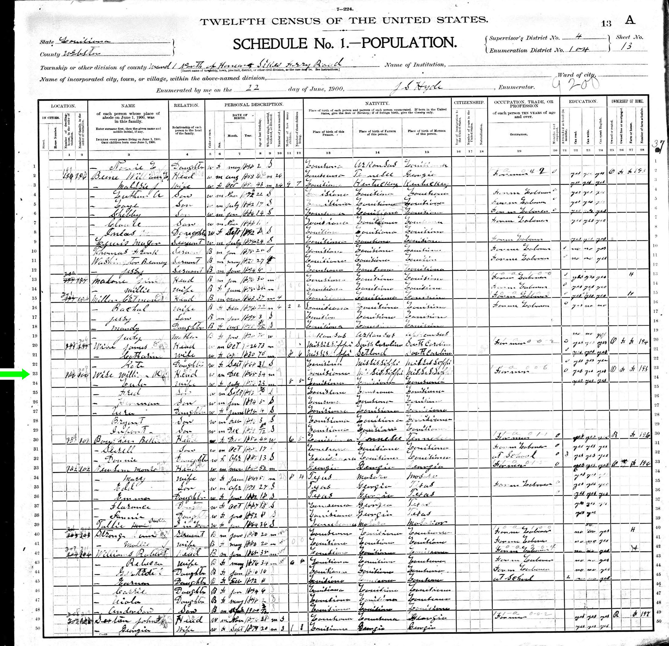 June 1900 in Webster Co., Louisiana