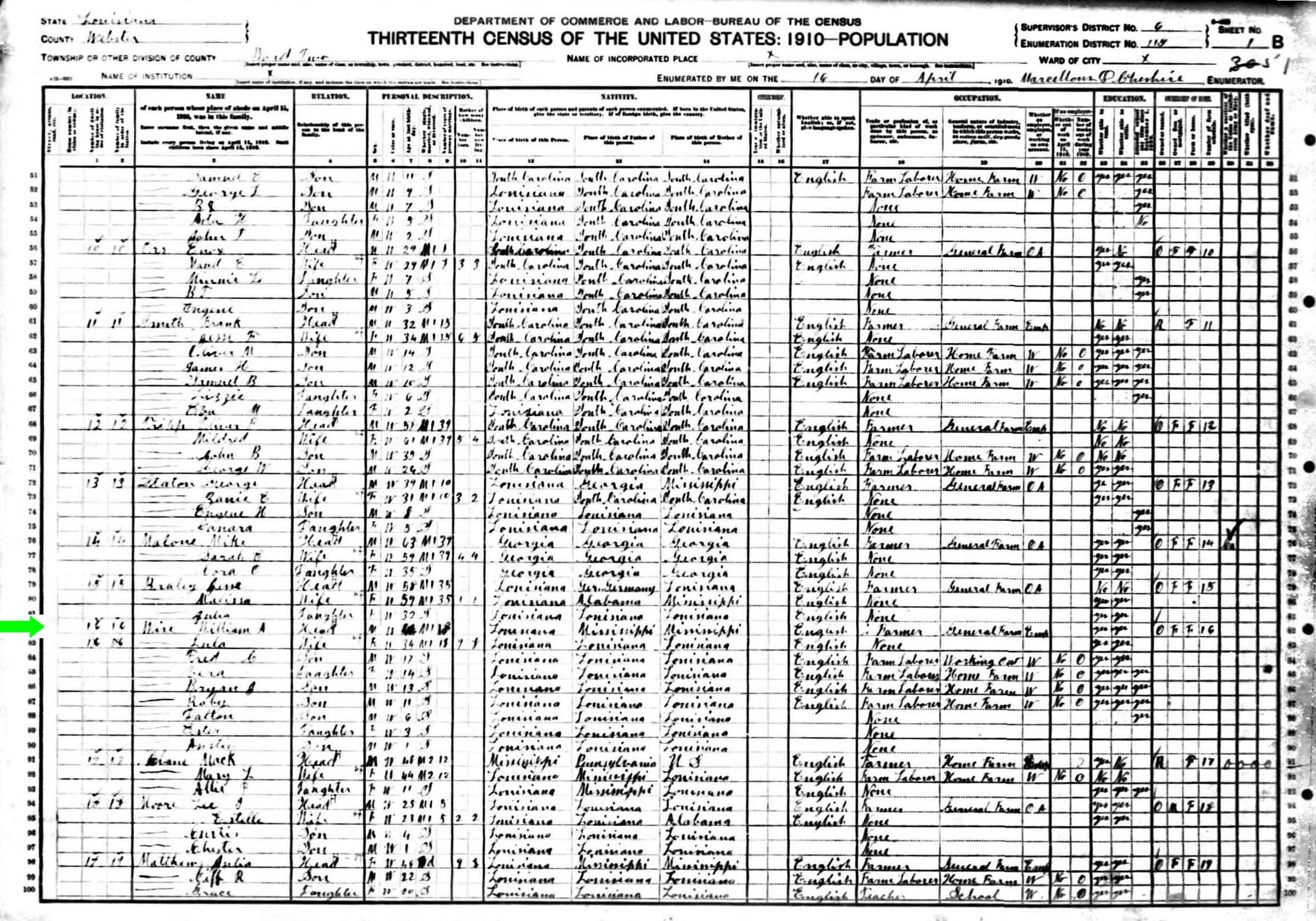 April 1910 in Webster Co., Louisiana