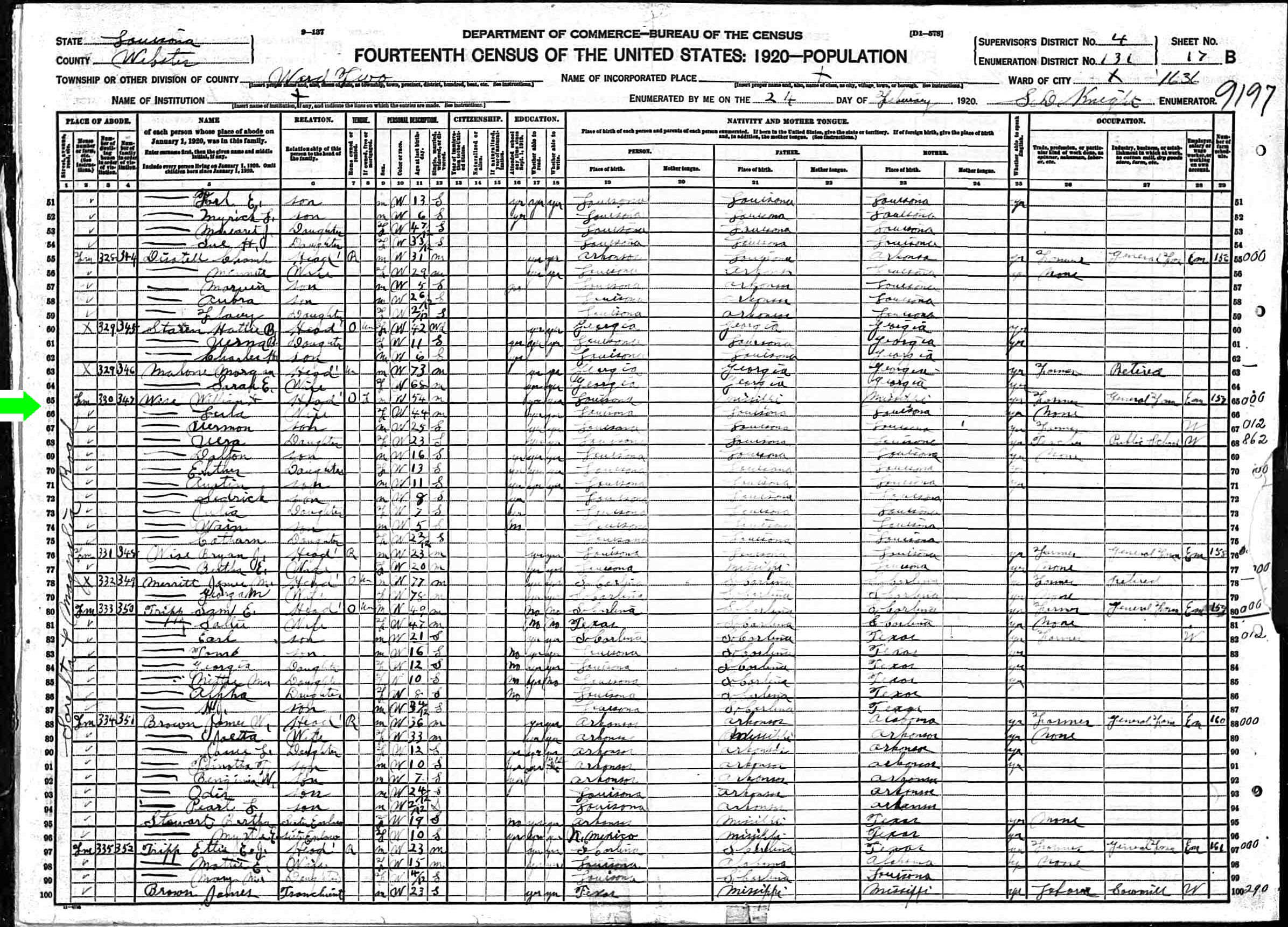 February 1920 in Webster Co., Louisiana