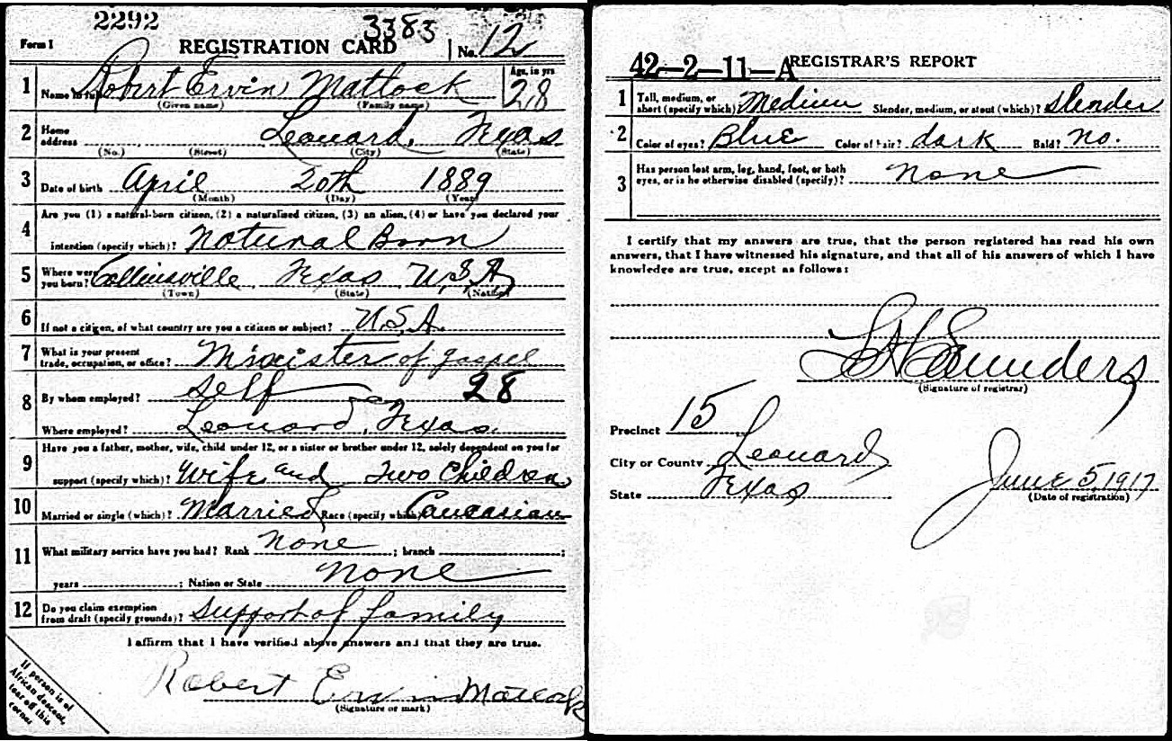 June 1917 in Leonard, Texas; Minister of the Gospel
