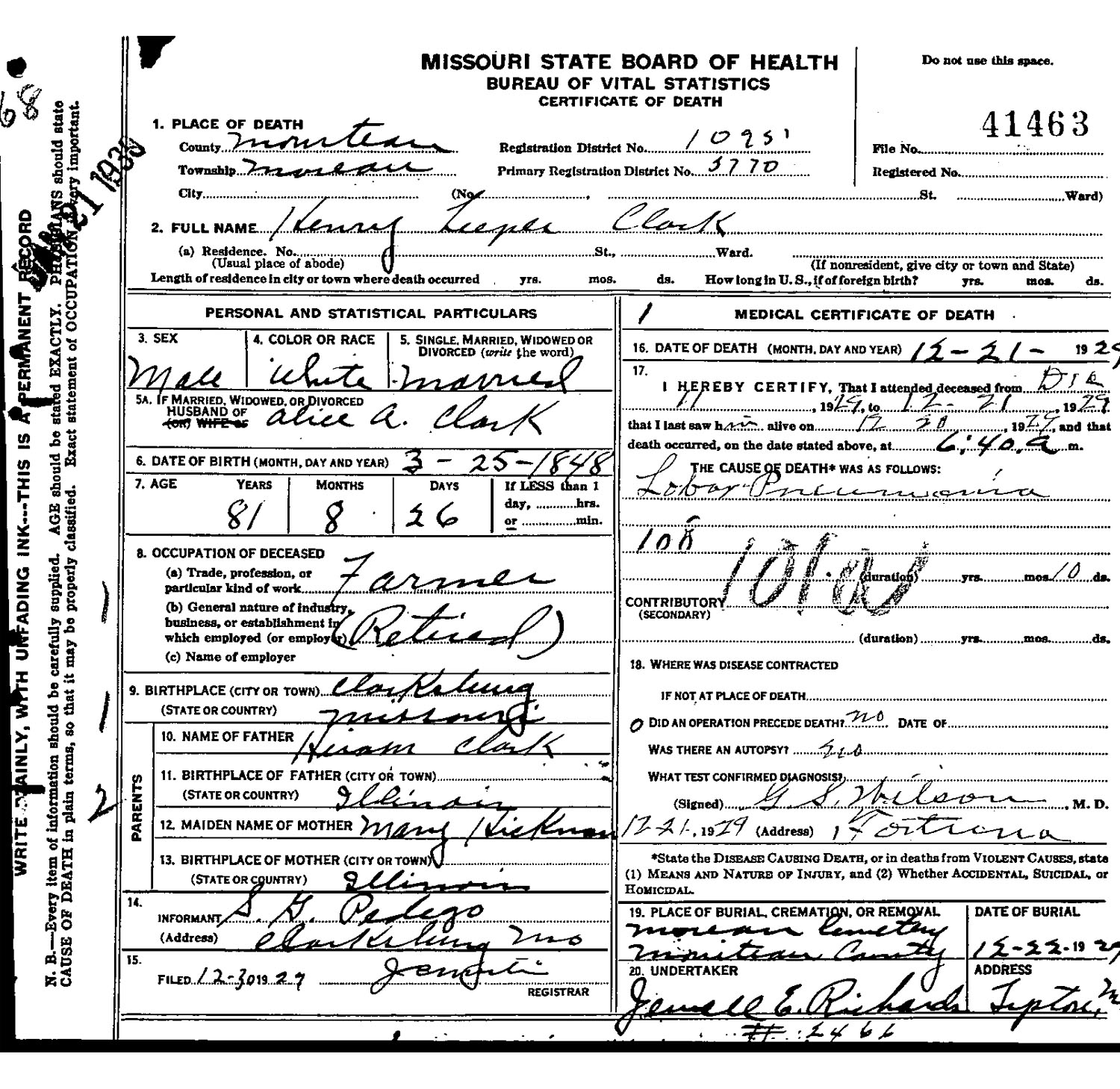 June 13, 1943 in Tipton, Missouri; Moreau Cemetery
