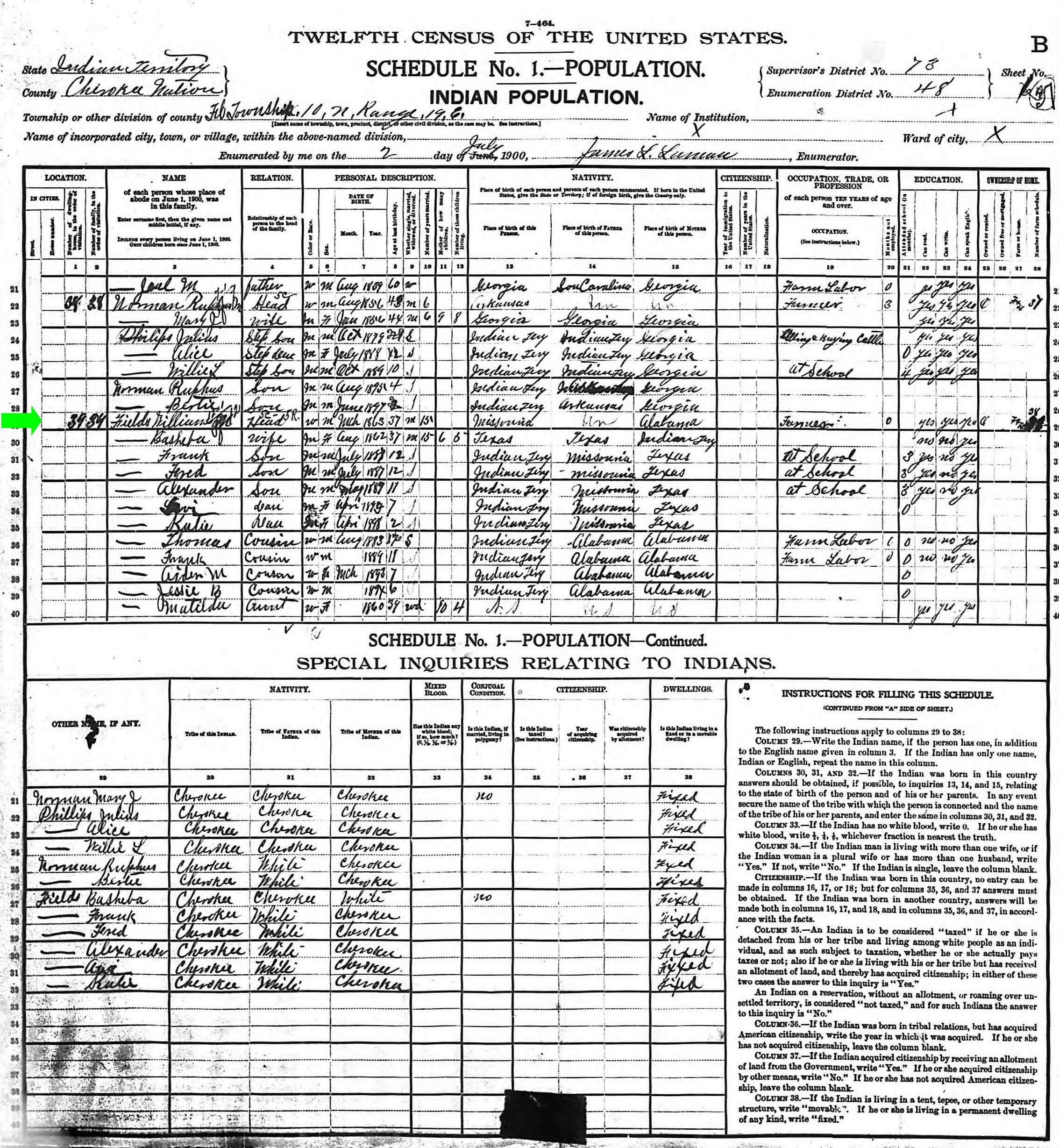 July 1900 in Cherokee Nation Co., Oklahoma