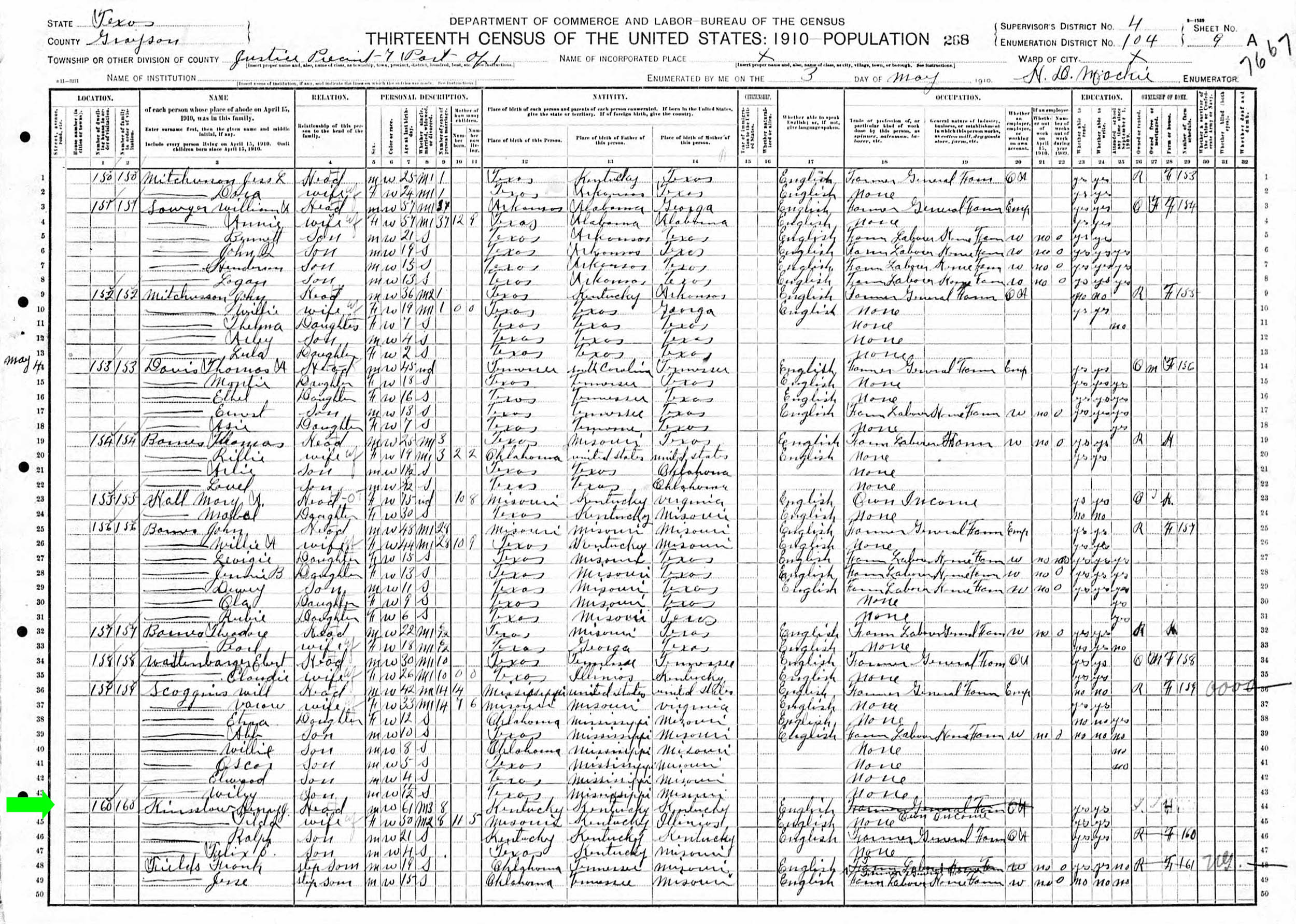 May 1910 in Grayson Co., Texas