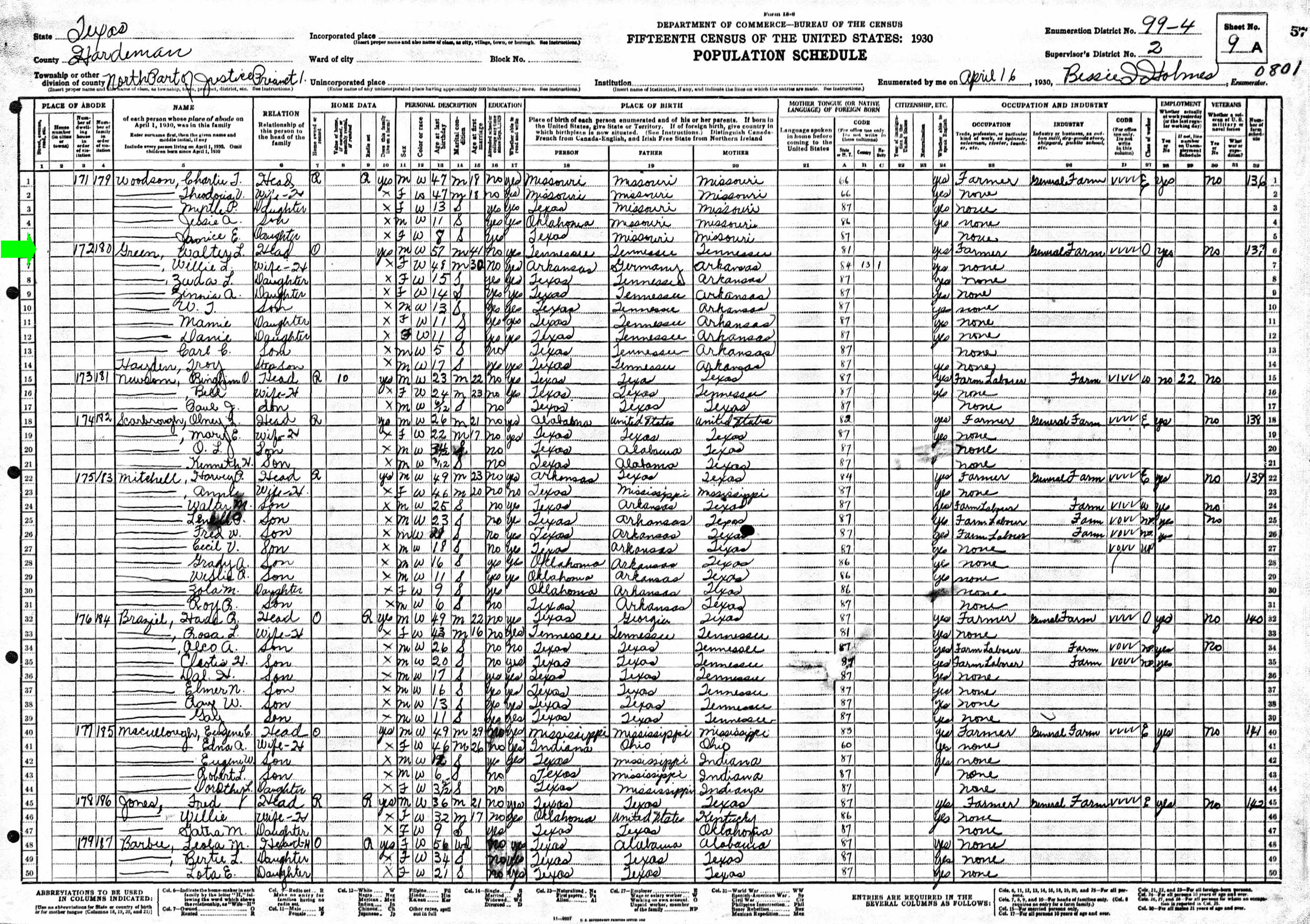 April 1930 in Hardeman Co., Texas