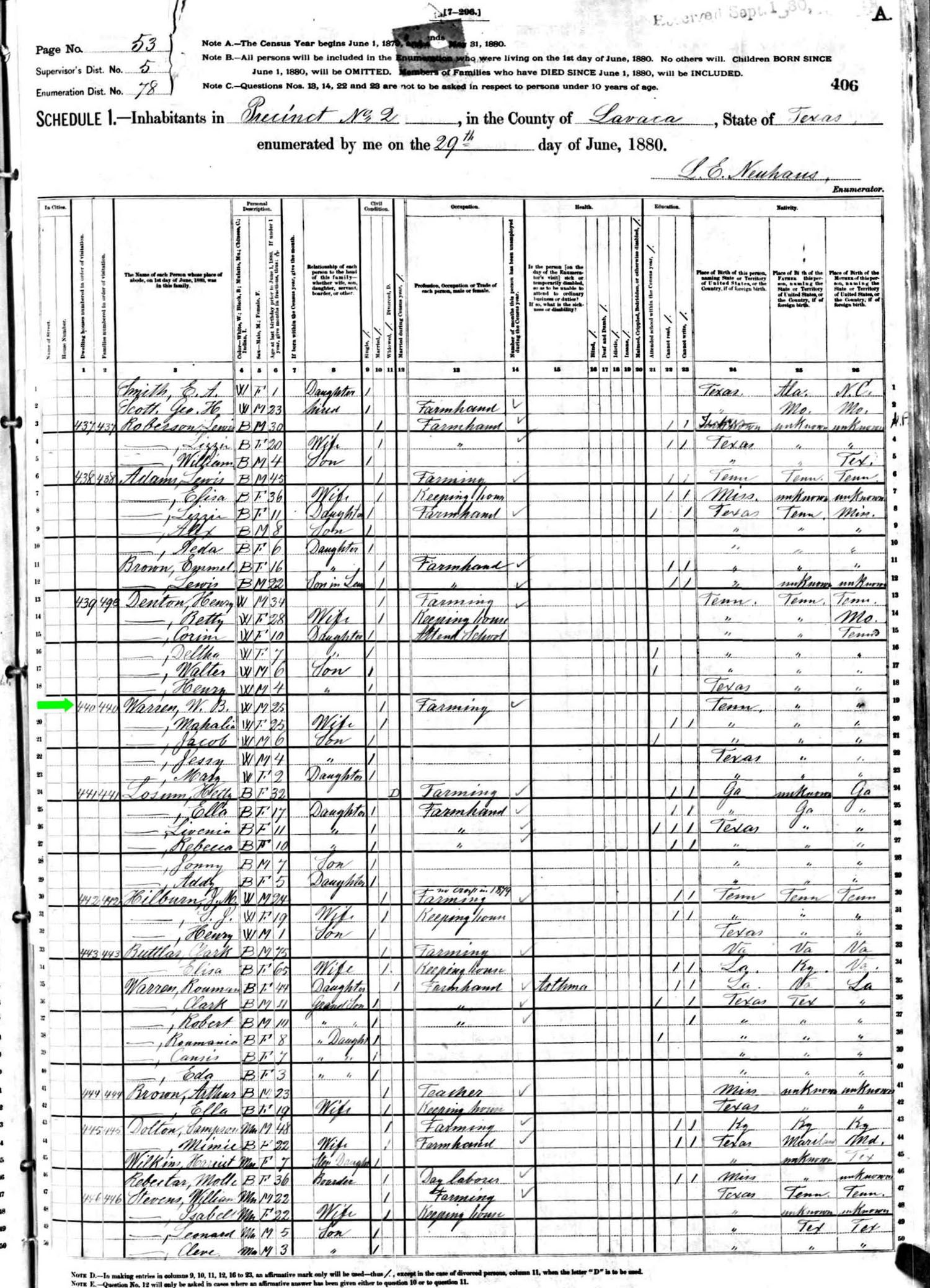 June 1880 in Lavaca Co., Texas