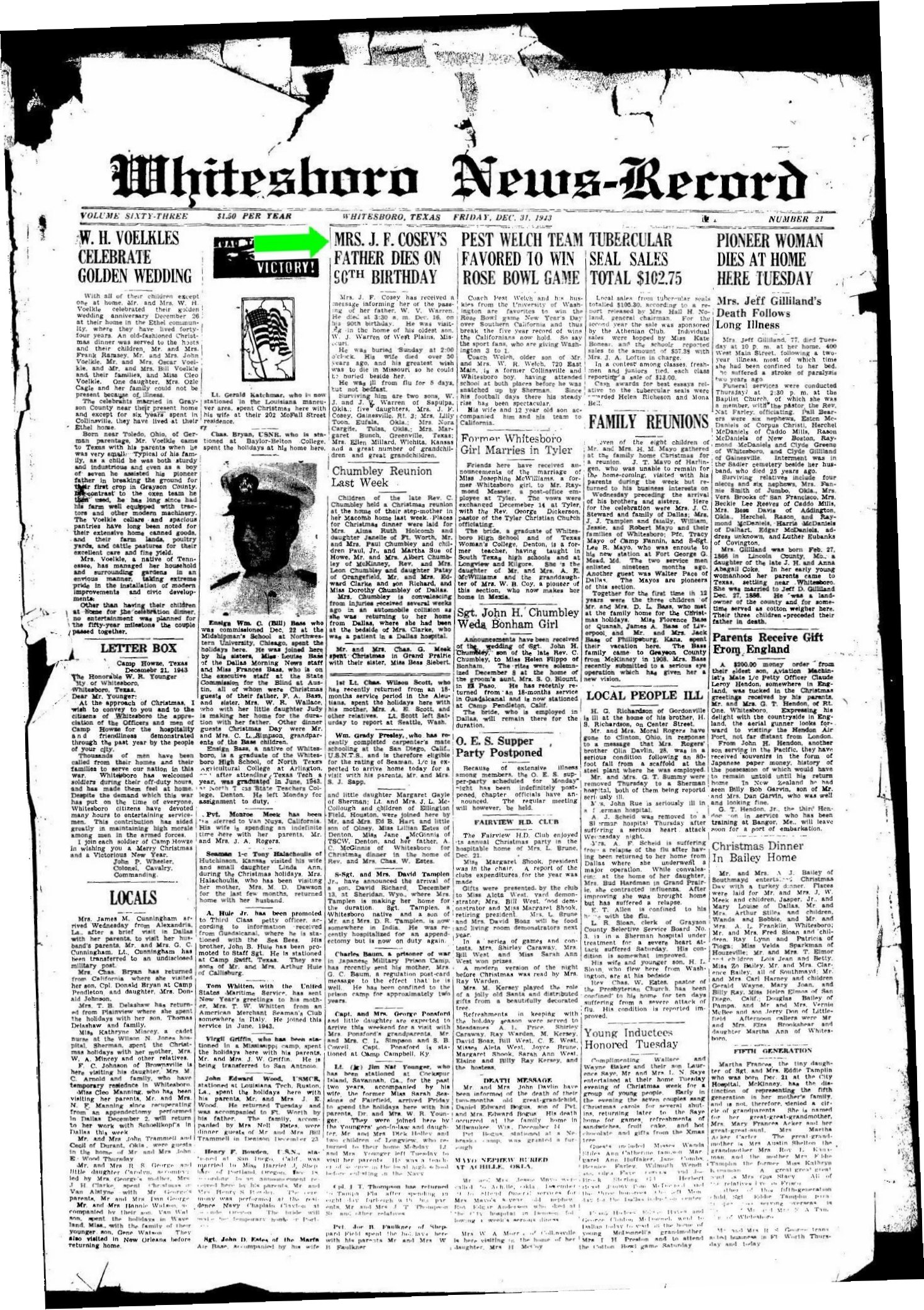 December 19, 1943 in Couch, Missouri; New Salem Cemetery