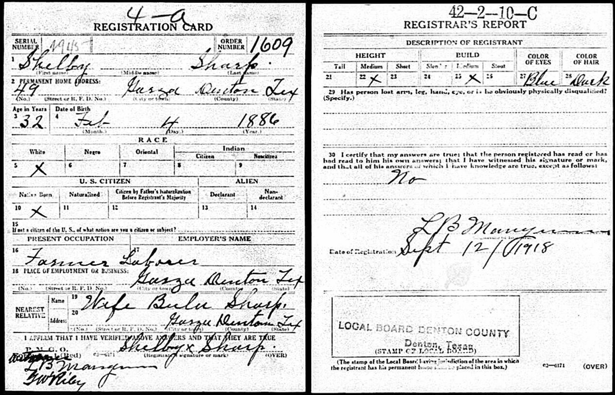 Sepember 1918 in Garza, Texas; Farmer