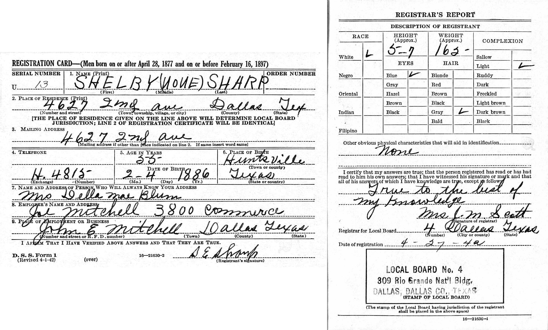 April 1942 in Dallas, Texas; 4627 2nd Ave